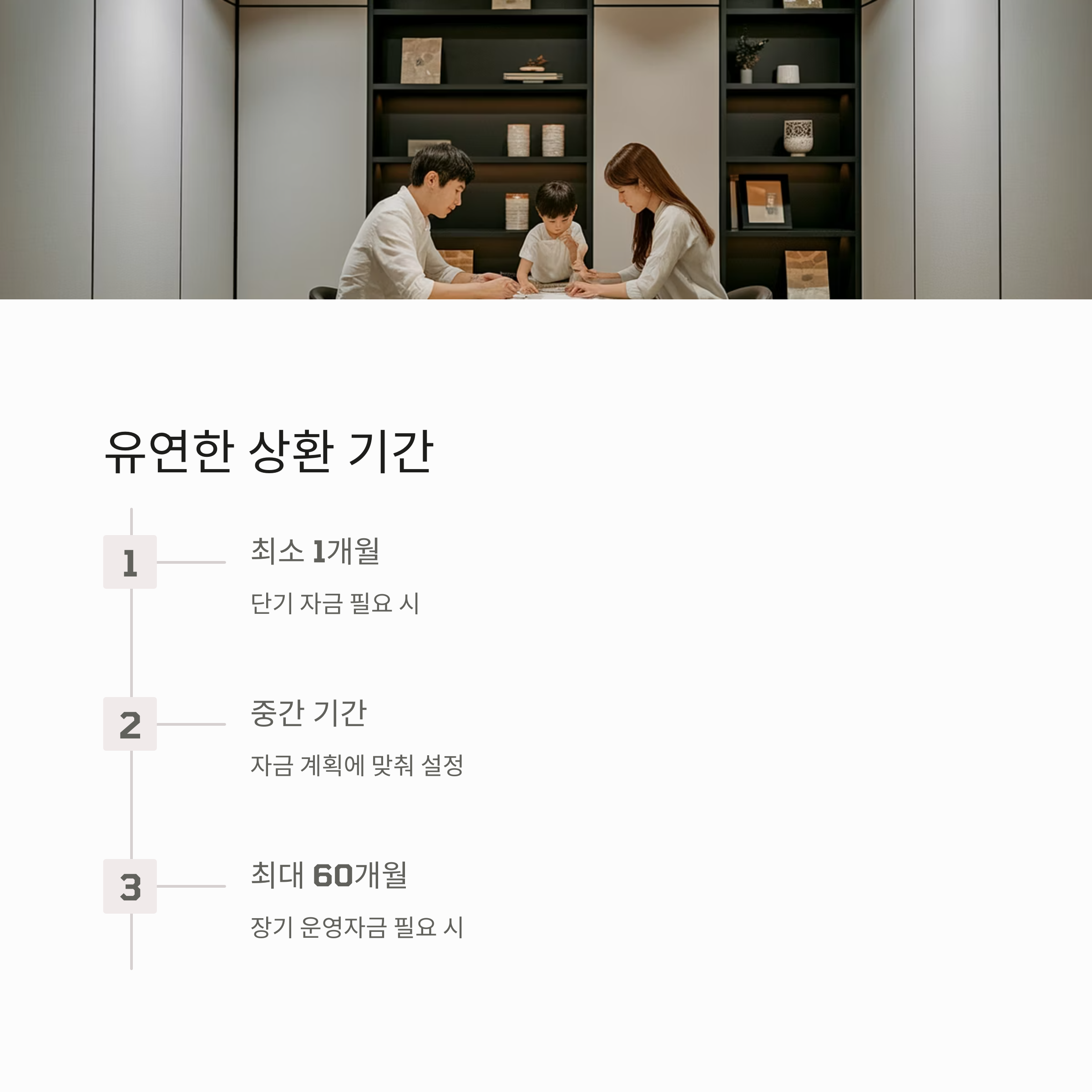 짧은 기간 자금이 필요한 분도, 장기 운영자금이 필요한 자영업자나 투자자도 활용 가능합니다.