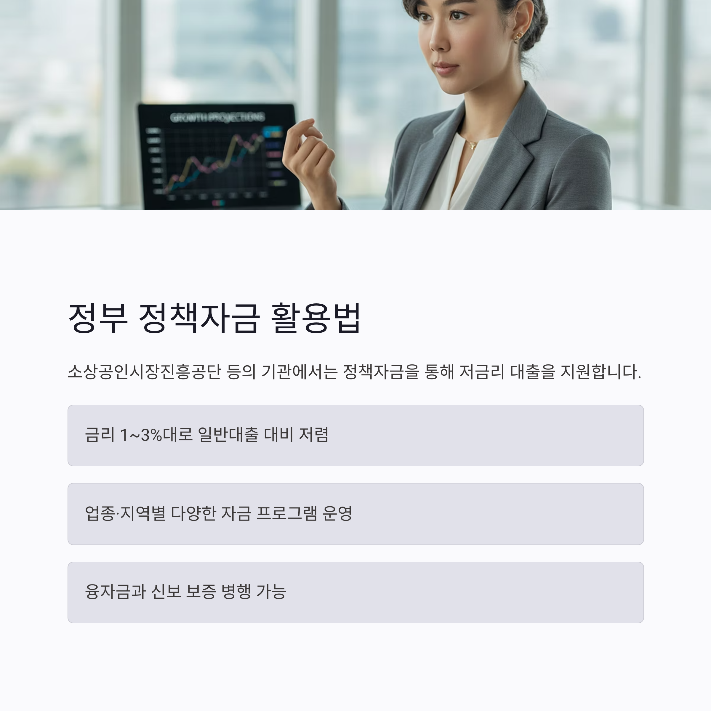 ✔ 업종·지역별 다양한 자금 프로그램 운영