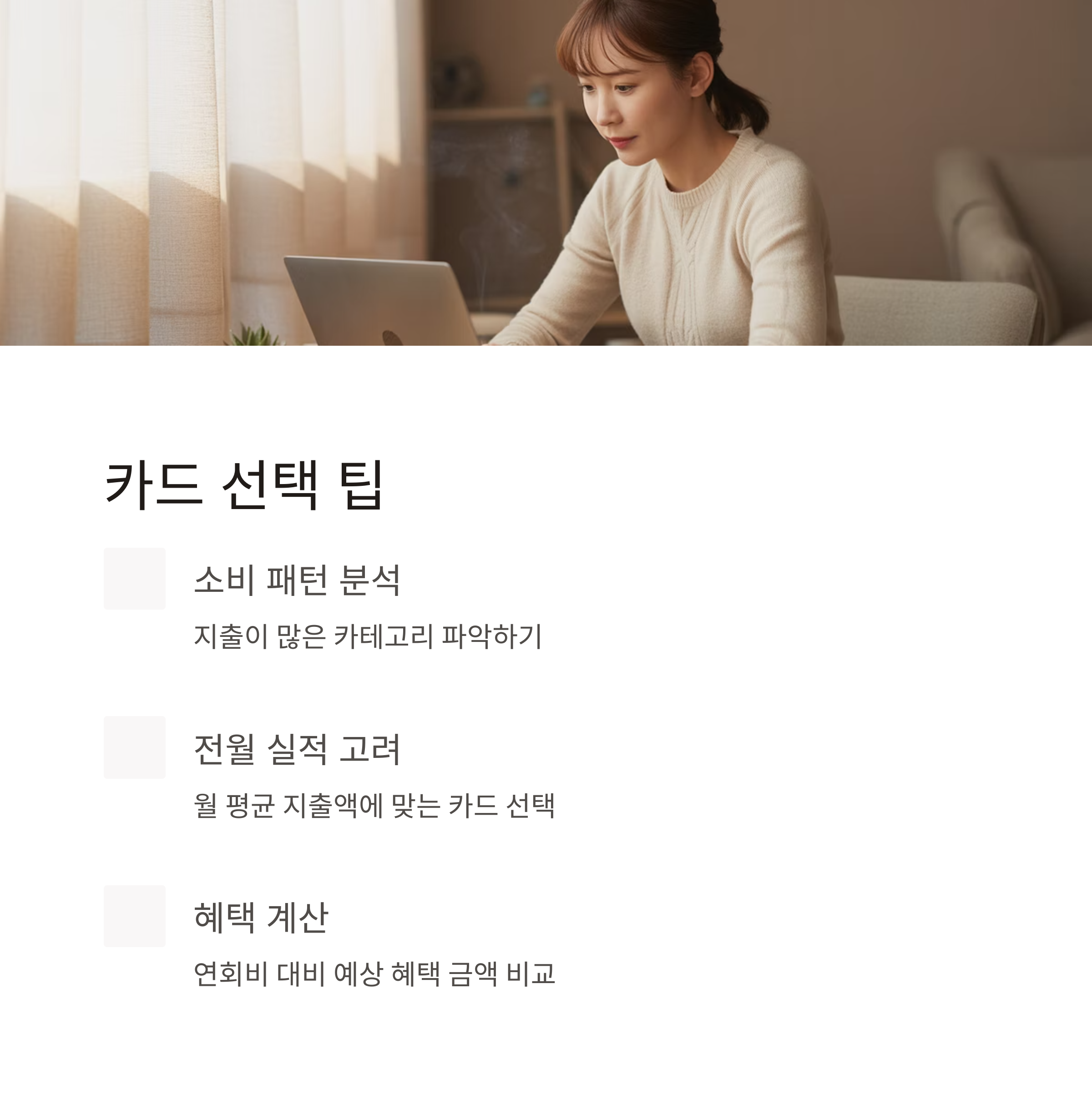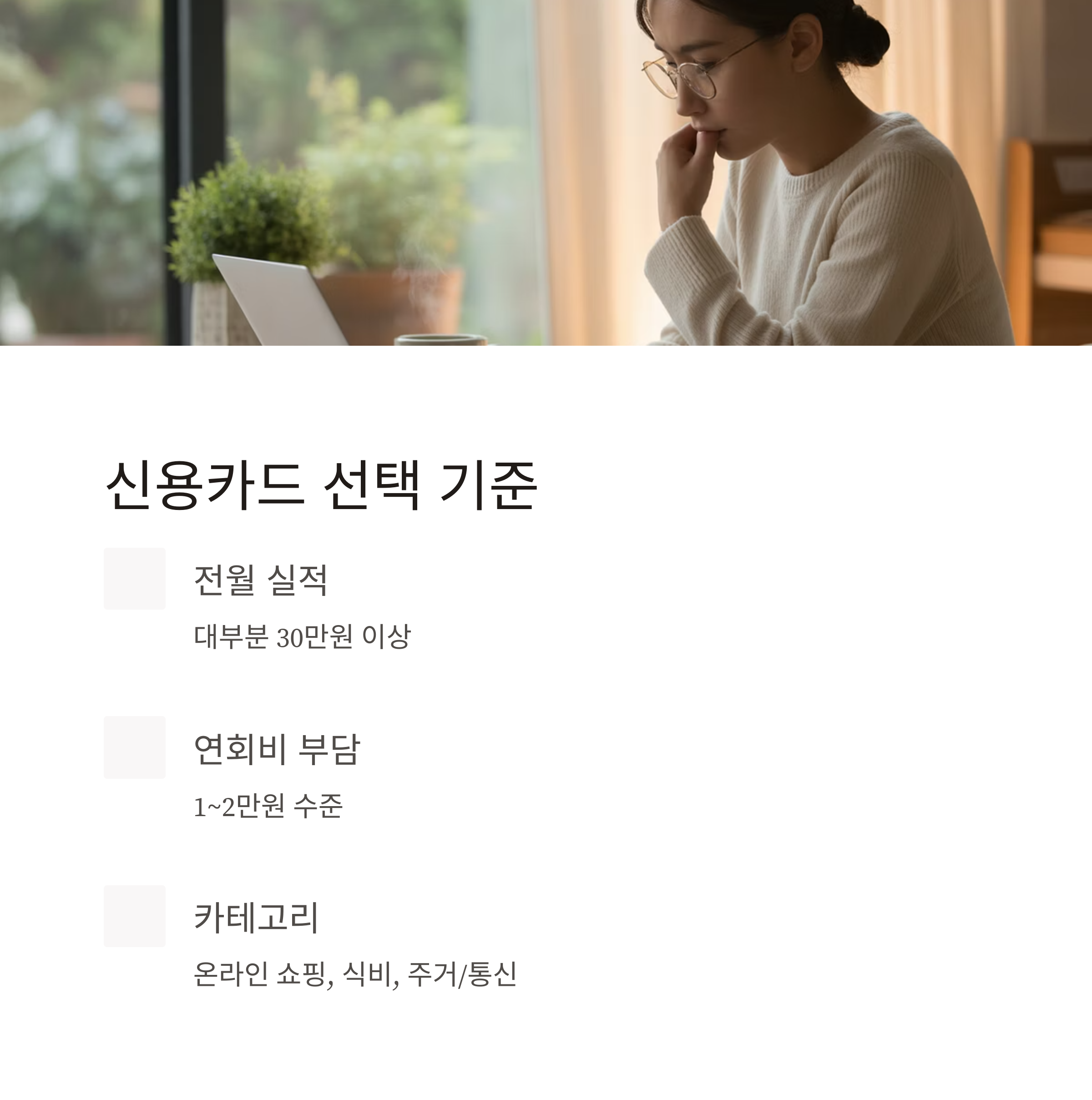 내 소비 패턴에 맞는 신용카드를 선택하는 것이 절약의 시작입니다.