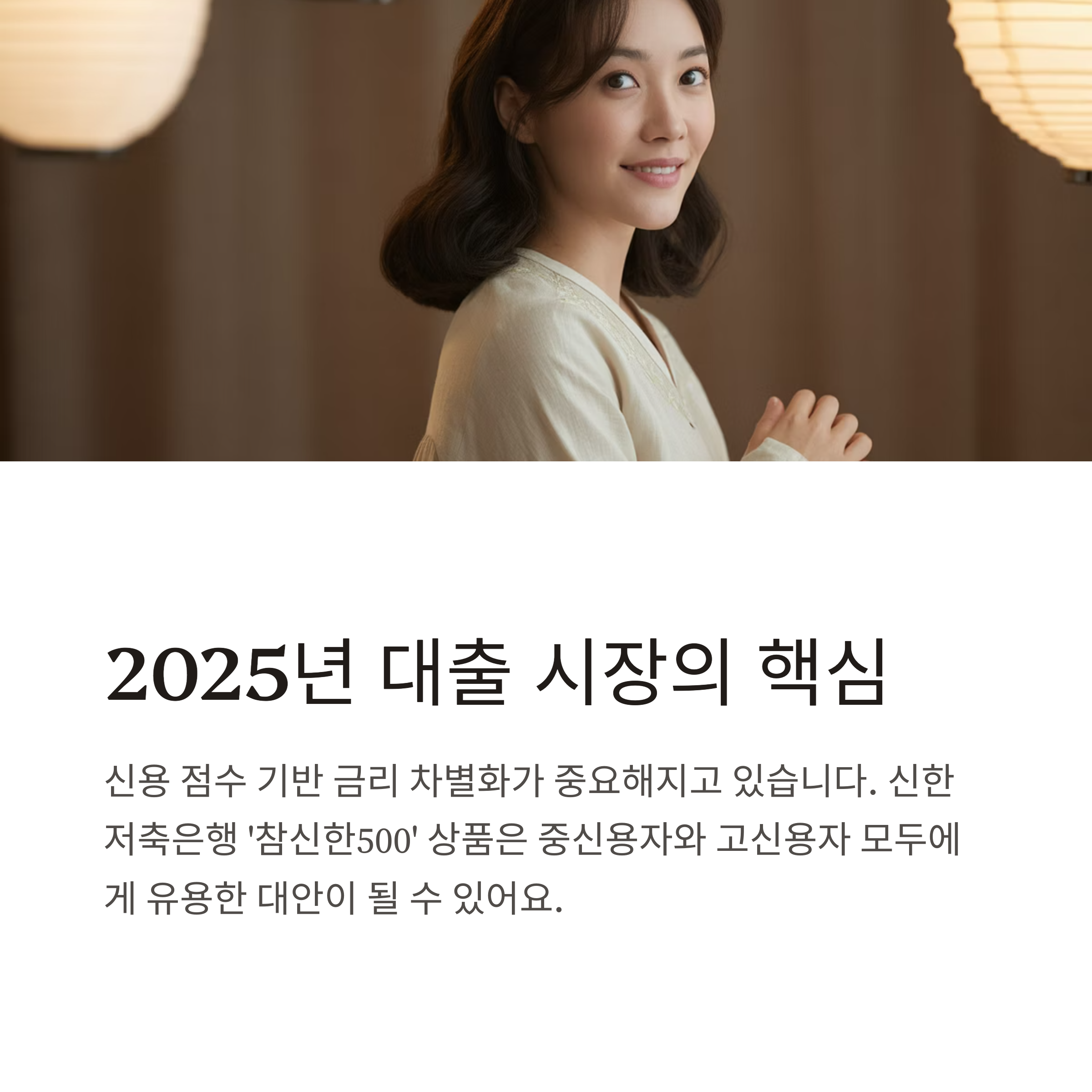 2025년, 신한저축은행의 '참신한500' 대출 상품이 주목받고 있습니다.신용점수에 따라 금리가 달라지고