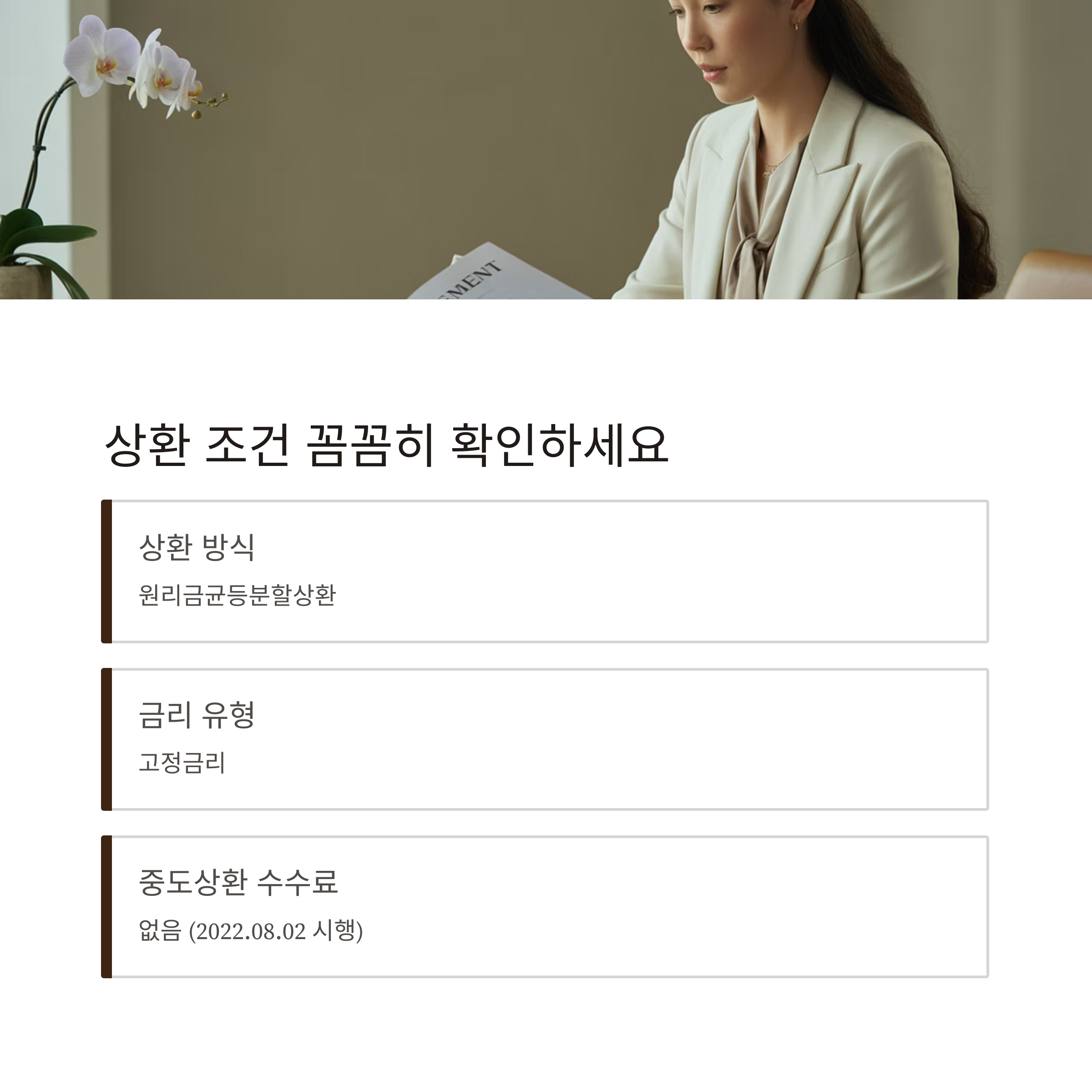 ✔ 중도상환 수수료 : 없음 (2022.08.02 시행)