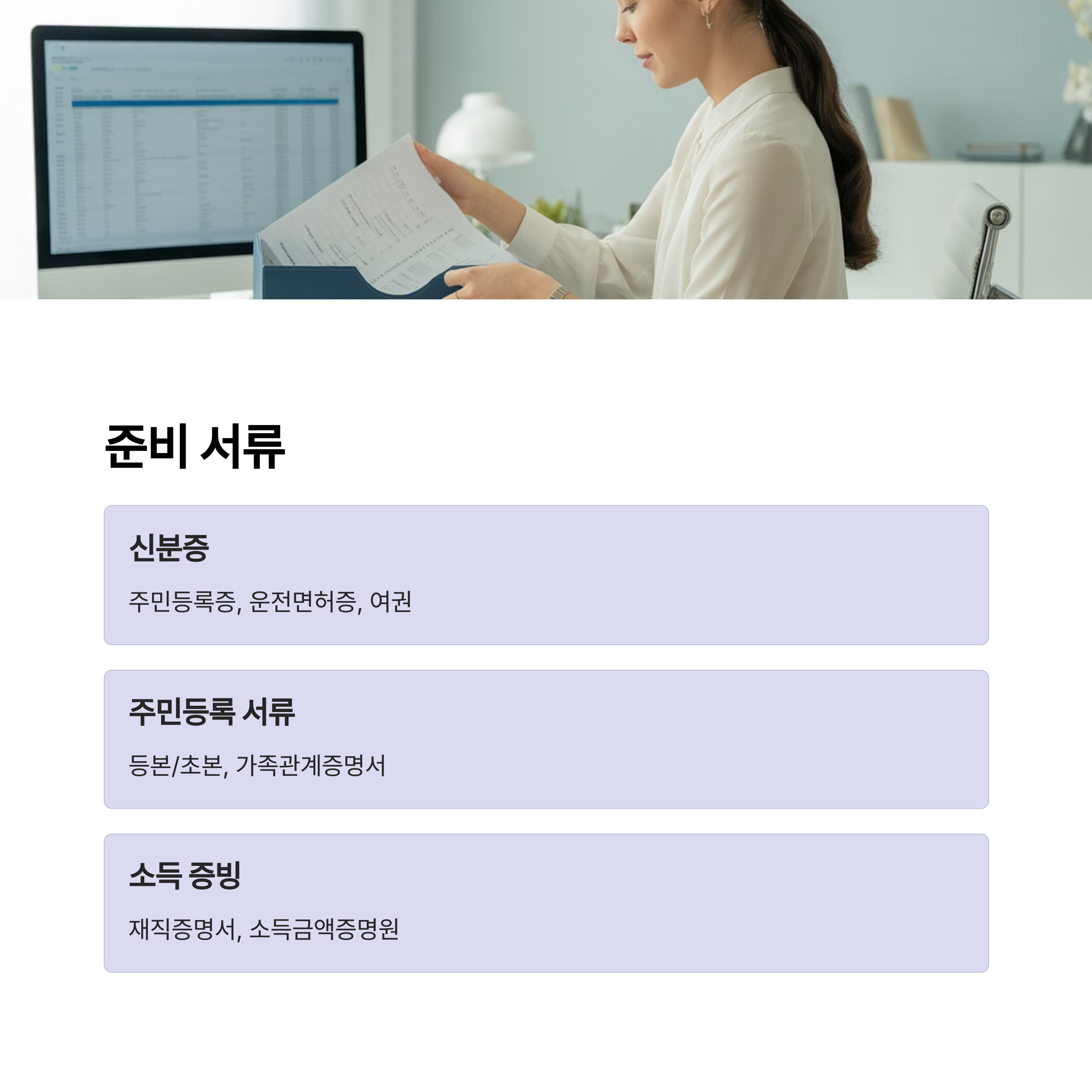 - 근로자: 재직증명서, 소득금액증명원, 건강보험납부확인서