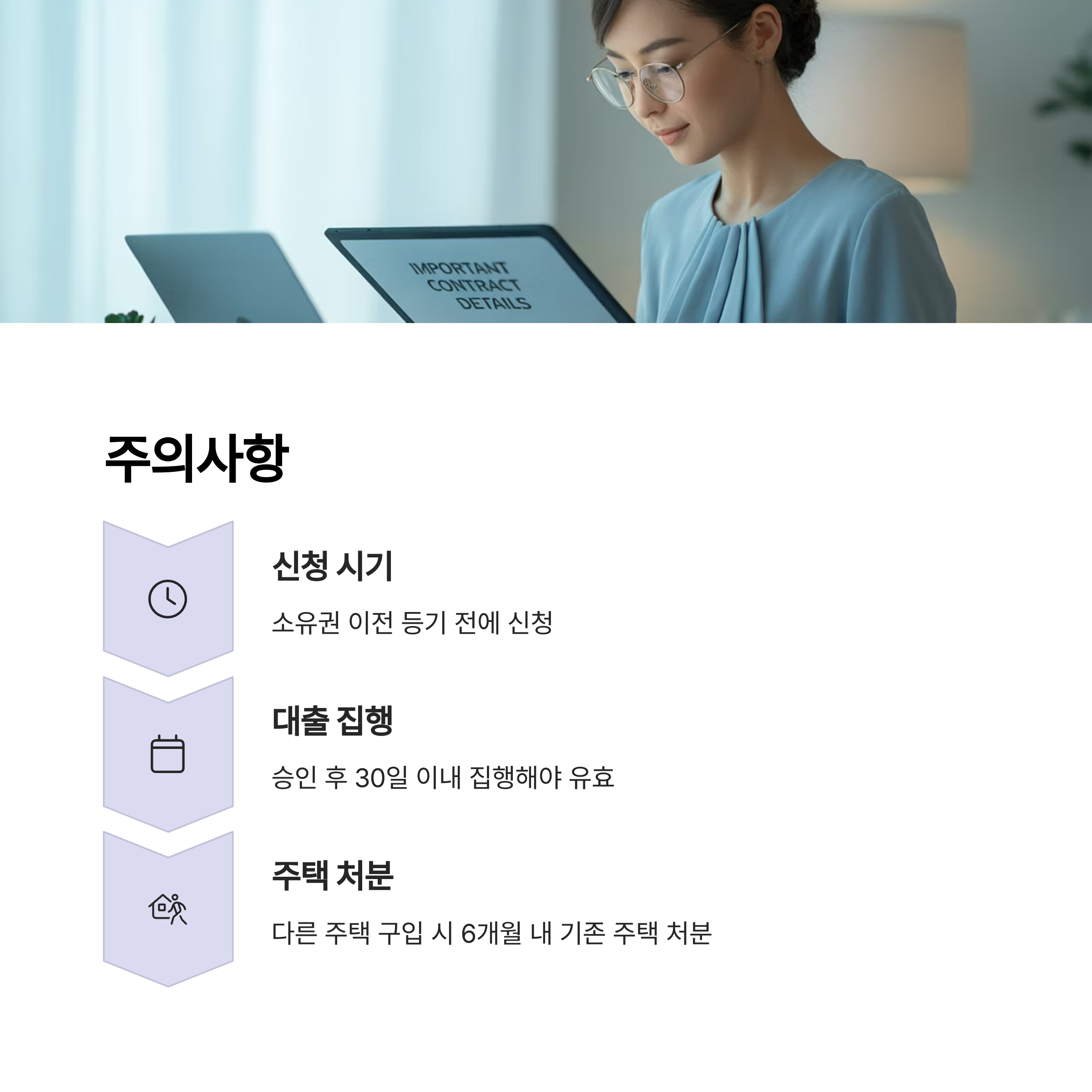 ⚠️ 대출 이후 다른 주택을 구입하면 6개월 이내 기존 주택을 반드시 처분해야 합니다.