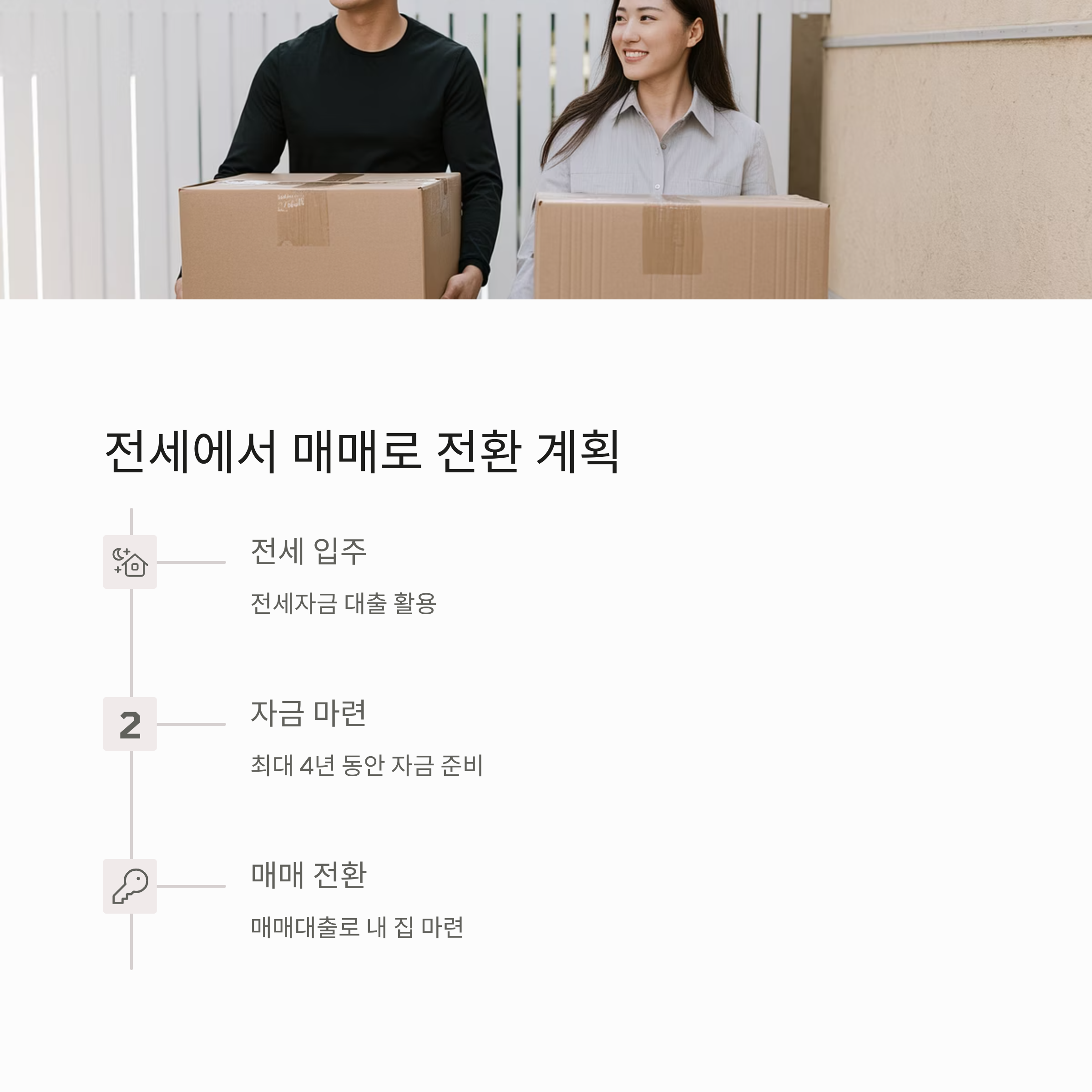 A8. 전세자금 대출은 최대 4년까지 연장 가능하며, 그 안에 매매 전환 준비 가능합니다.