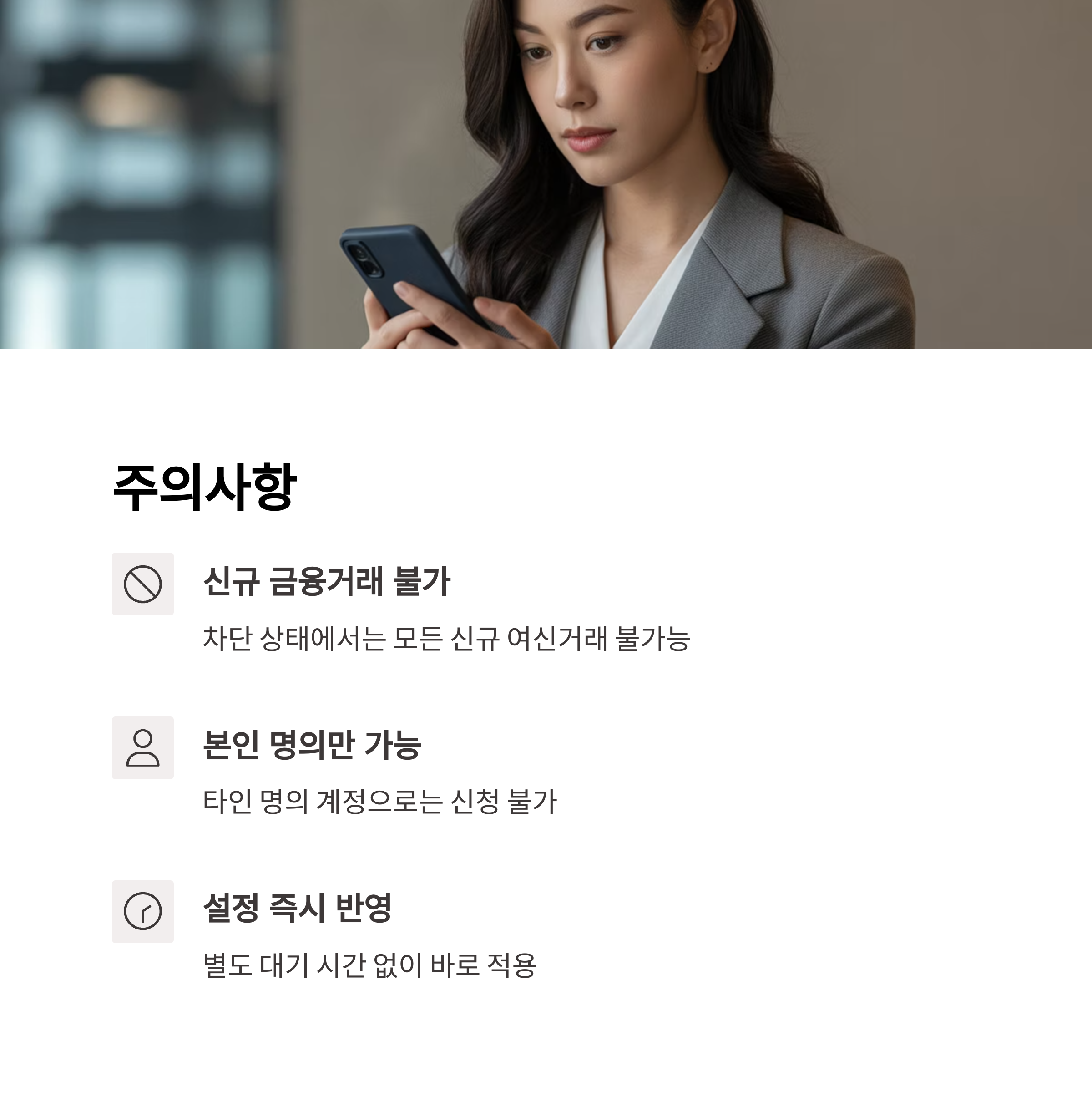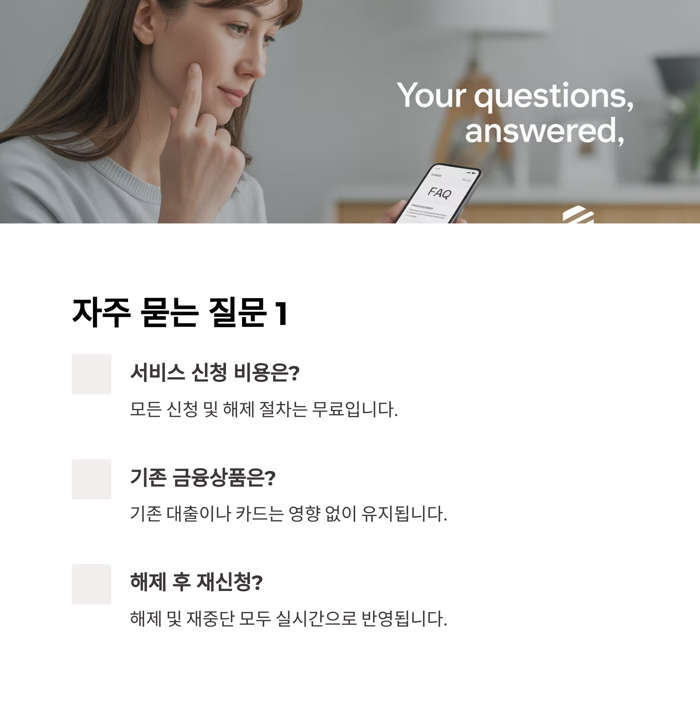 상황에 따라 대출이나 카드 발급이 필요할 경우, 아래 절차를 통해 언제든지 즉시 해제가 가능합니다.