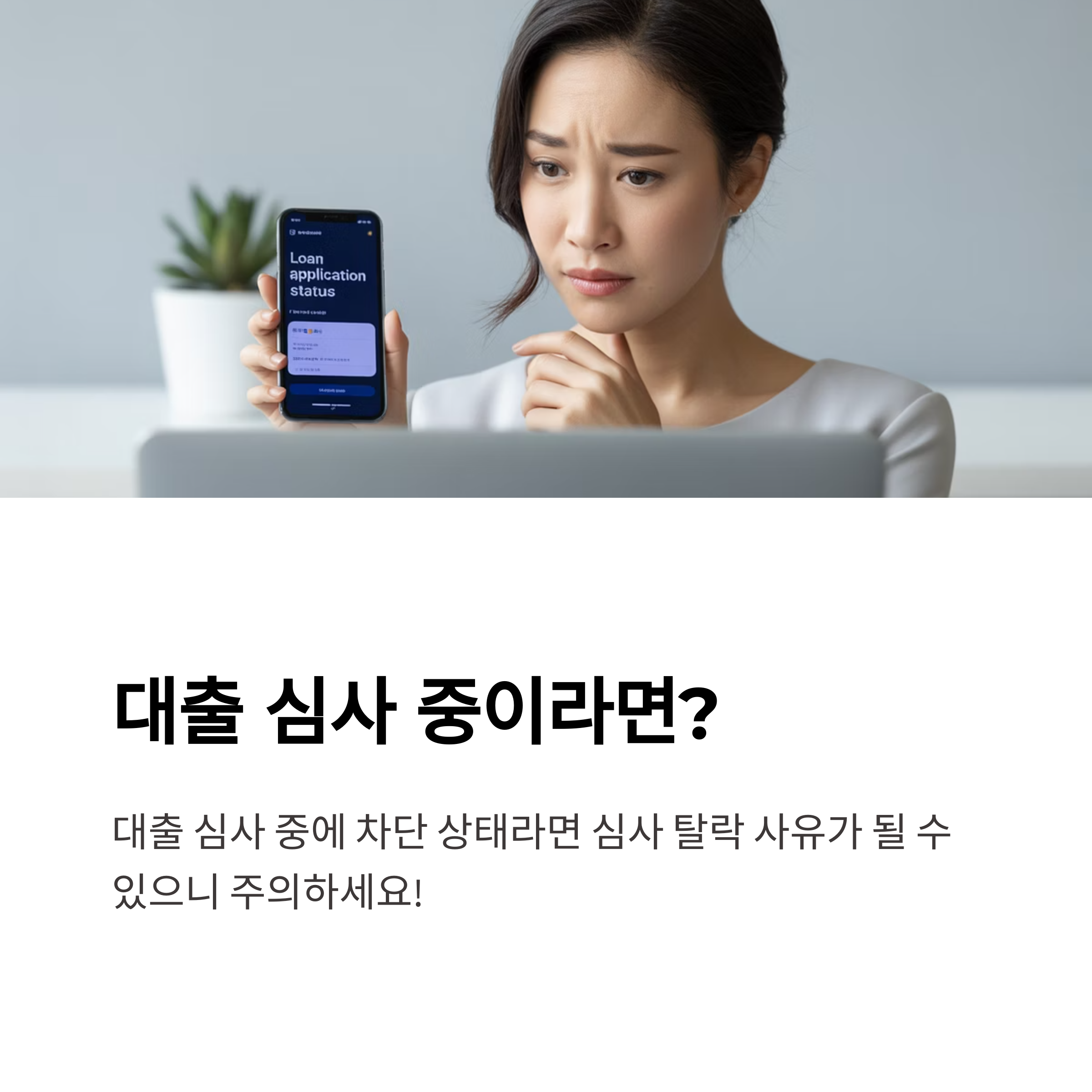 특히, 대출 심사 중에 차단 상태라면 심사 탈락 사유가 될 수 있으므로 반드시 체크가 필요합니다.