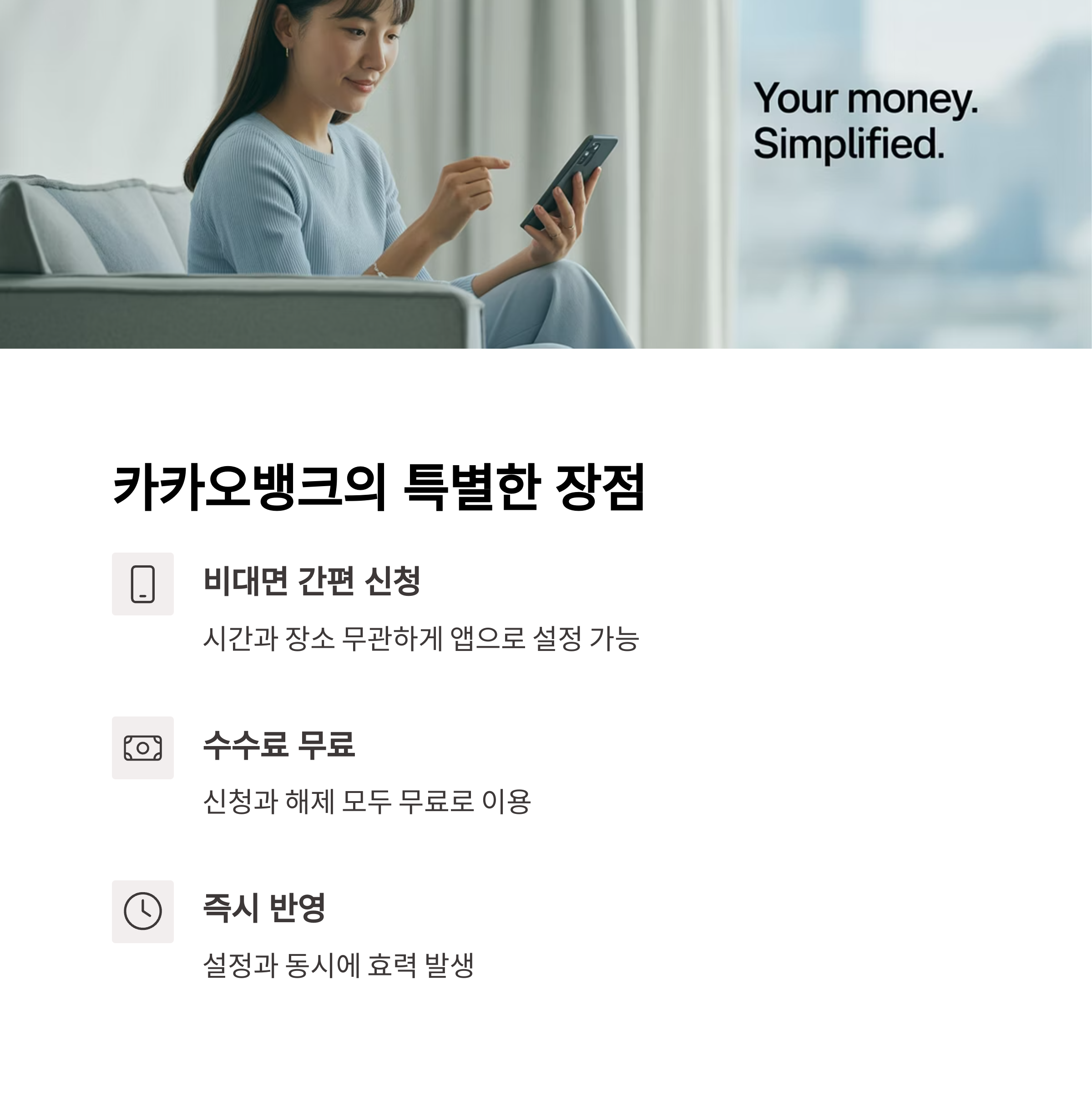 특히 카카오뱅크 사용자라면, 앱만으로 몇 번의 클릭으로 설정이 가능해 별도 방문이나 서류 제출이 필요 없습니다.