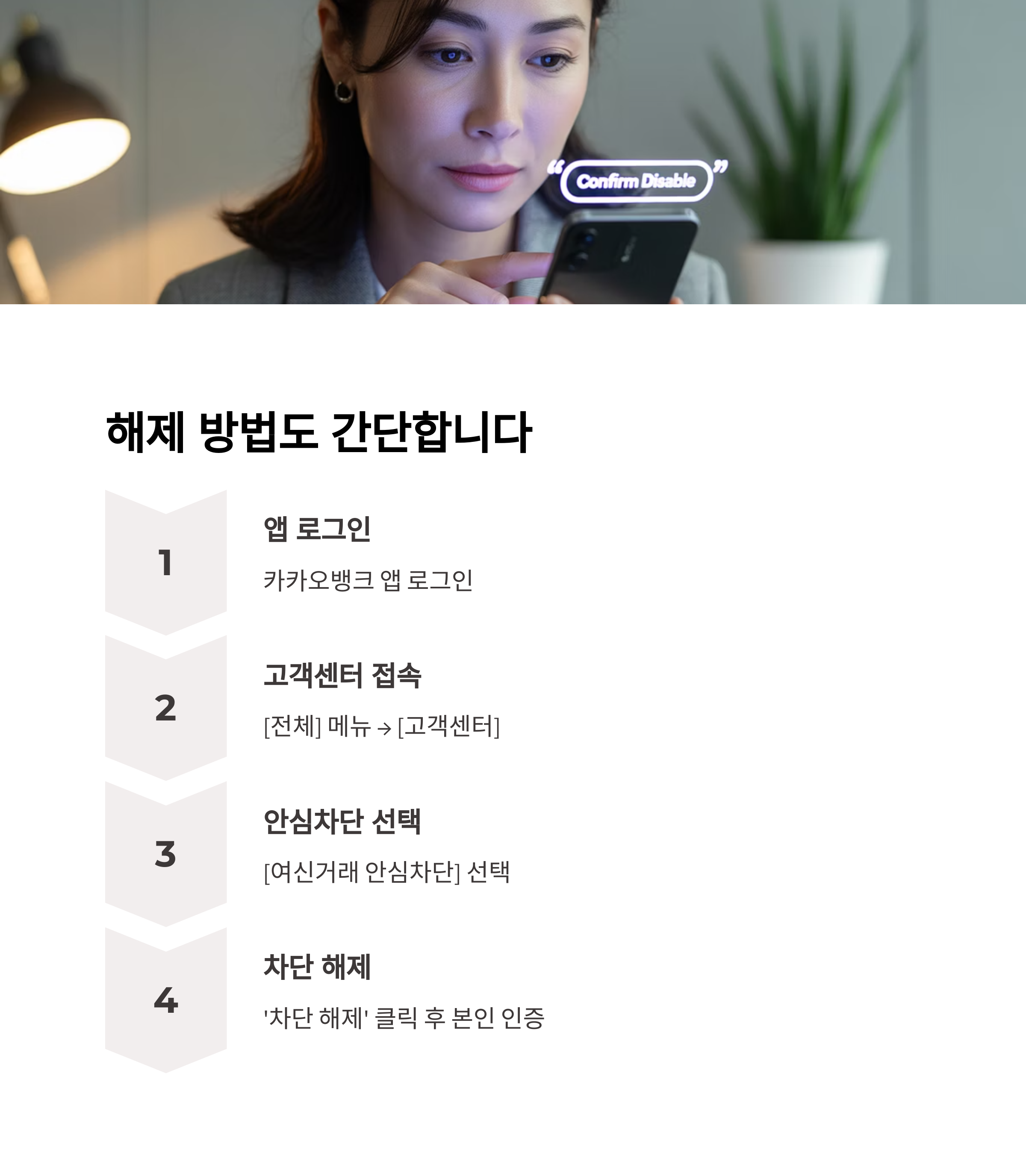 특히 카카오뱅크 이용자라면 앱 하나로 간편하게 신청과 해제를 할 수 있어 누구나 쉽게 금융보안을 강화할 수 있습니다.