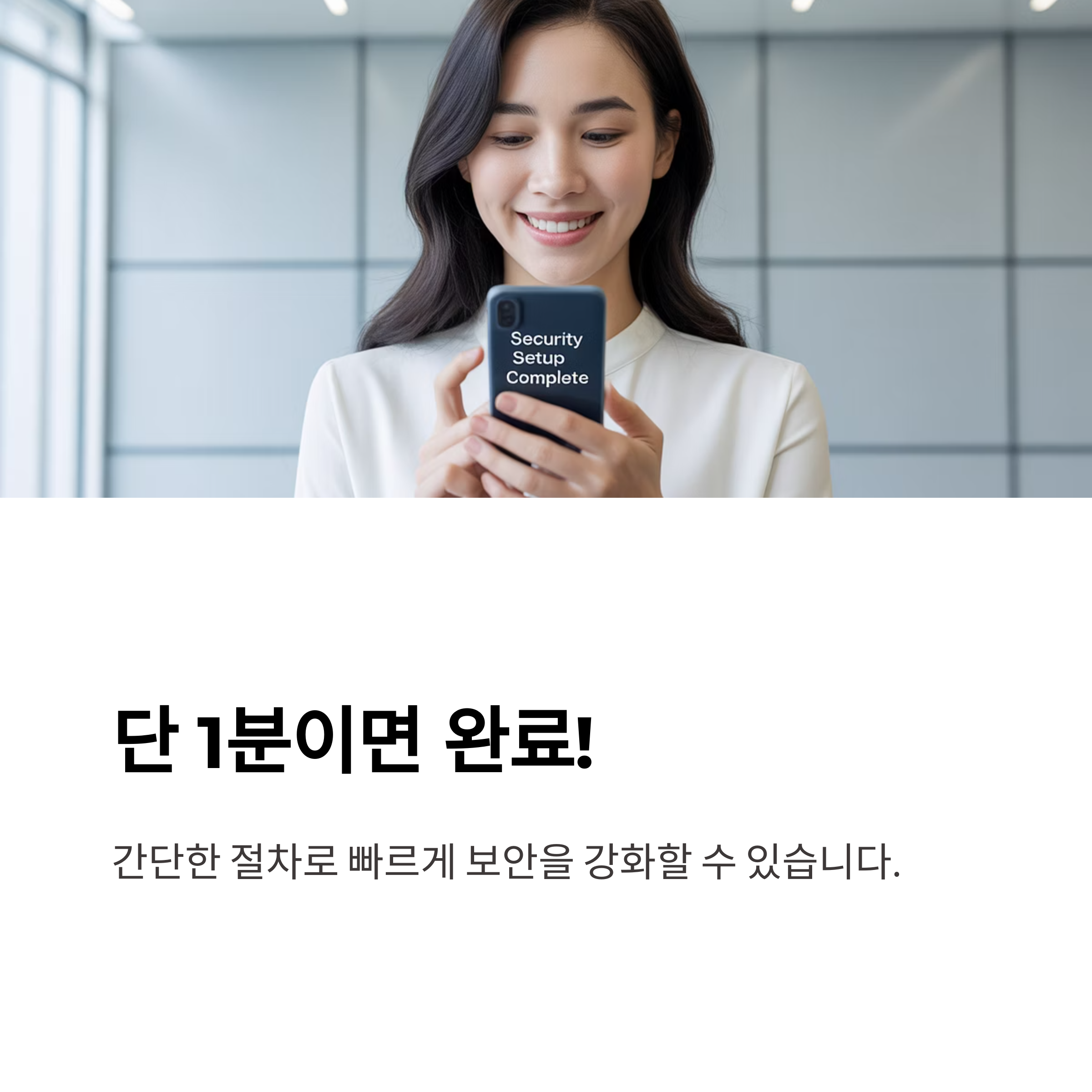 단 1분이면 완료되는 절차로, 보안이 강화됩니다.