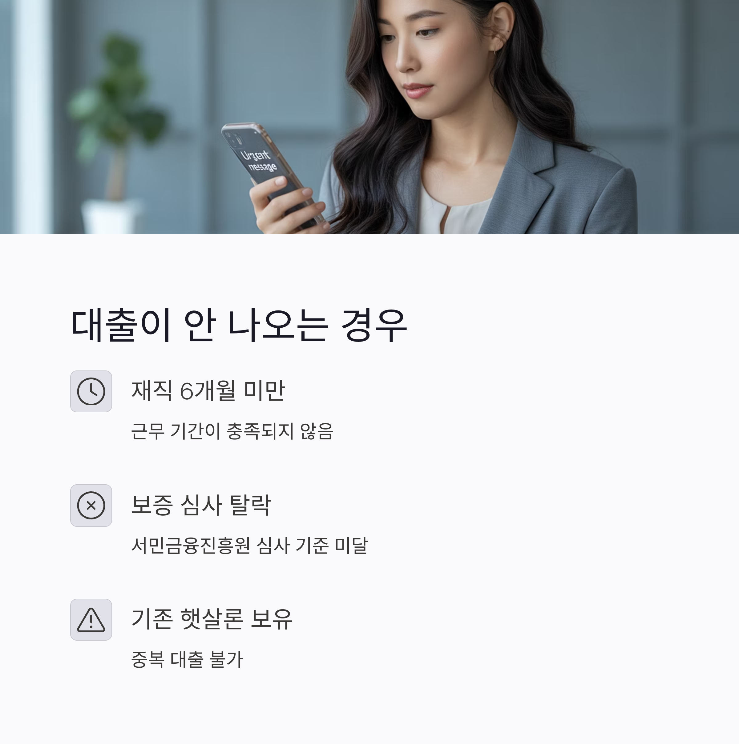 이런 경우엔 상담을 통해 다른 대안 상품을 제안받을 수 있으니 포기하지 마세요.