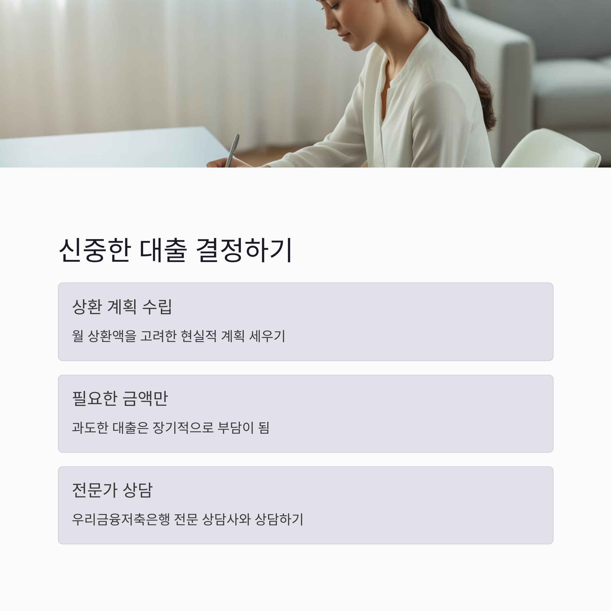 - 전문 상담 활용: 우리금융저축은행 상담 창구를 통해 본인에게 맞는 조건 안내받기