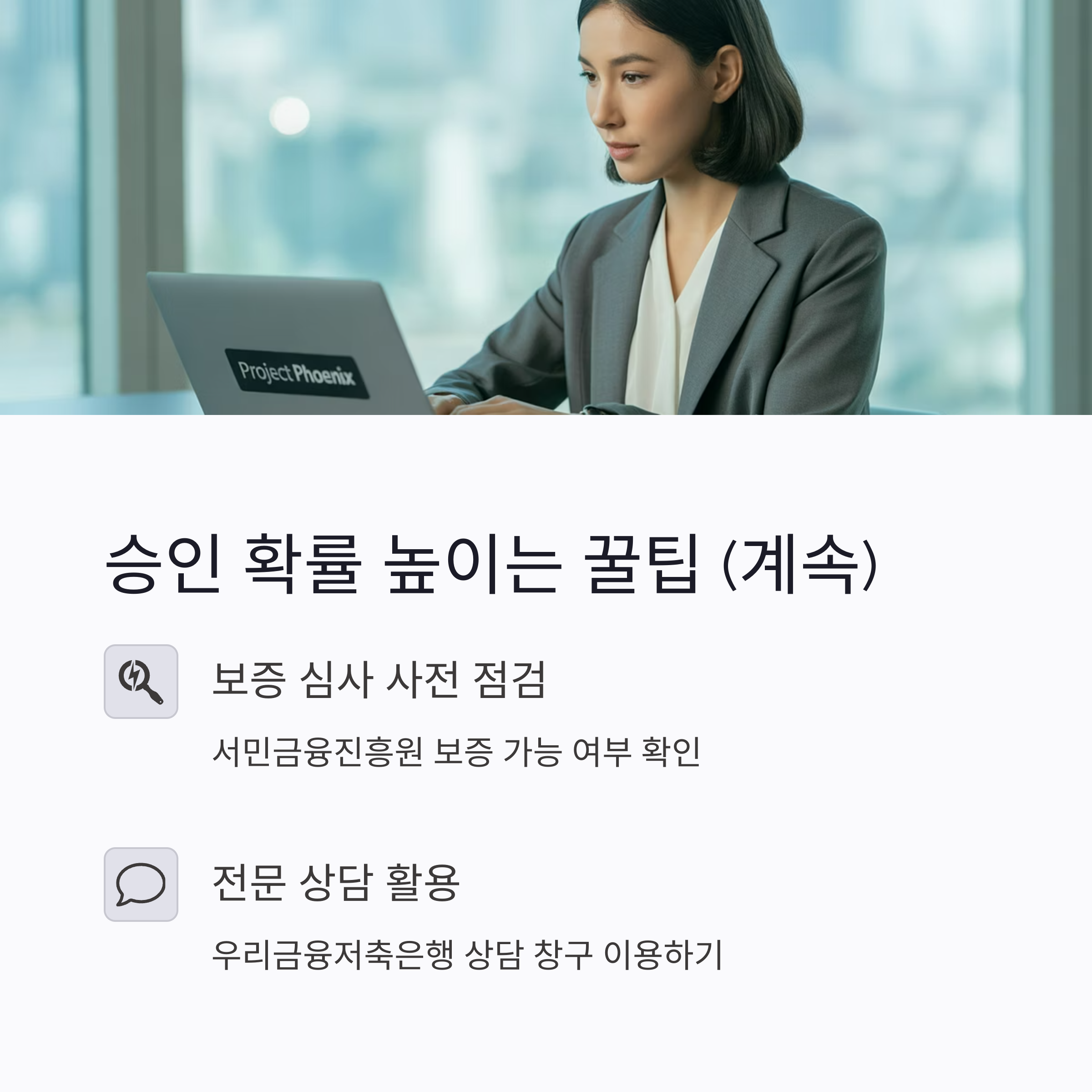 - 보증 심사 사전 점검: 서민금융진흥원 보증 가능 여부 확인