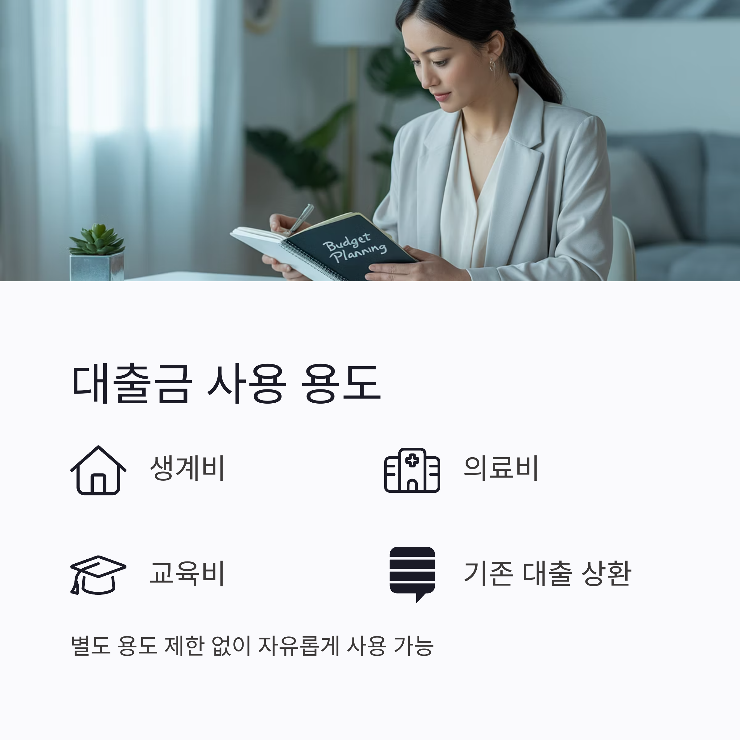 별도 용도 제한 없이 자유롭게 사용 가능하므로, 갑작스러운 지출에도 대응할 수 있습니다.