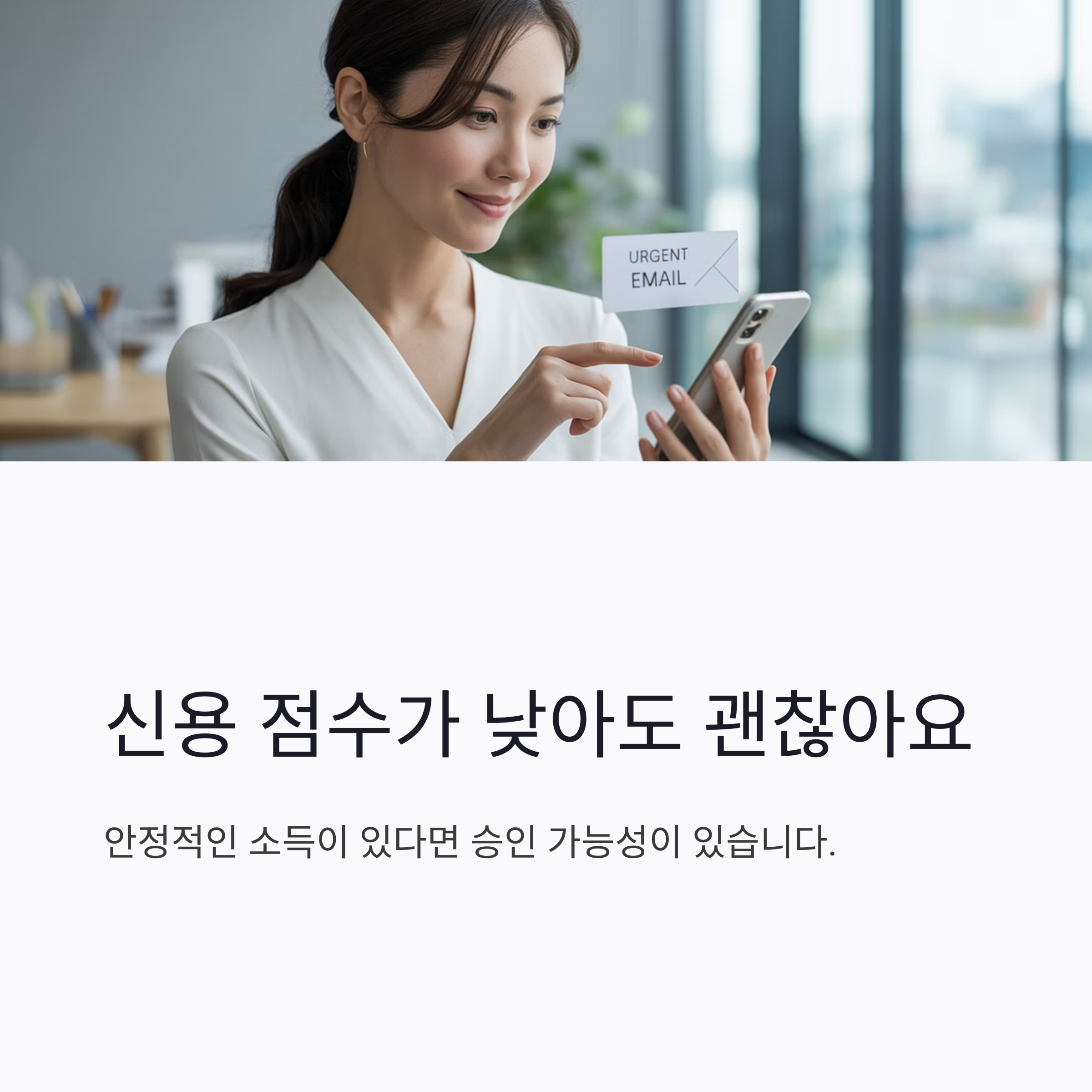 신용 점수가 낮더라도 소득이 안정적이라면 승인 가능성이 있습니다. 특히 모바일 대출이 가능한 점이 큰 장점입니다.