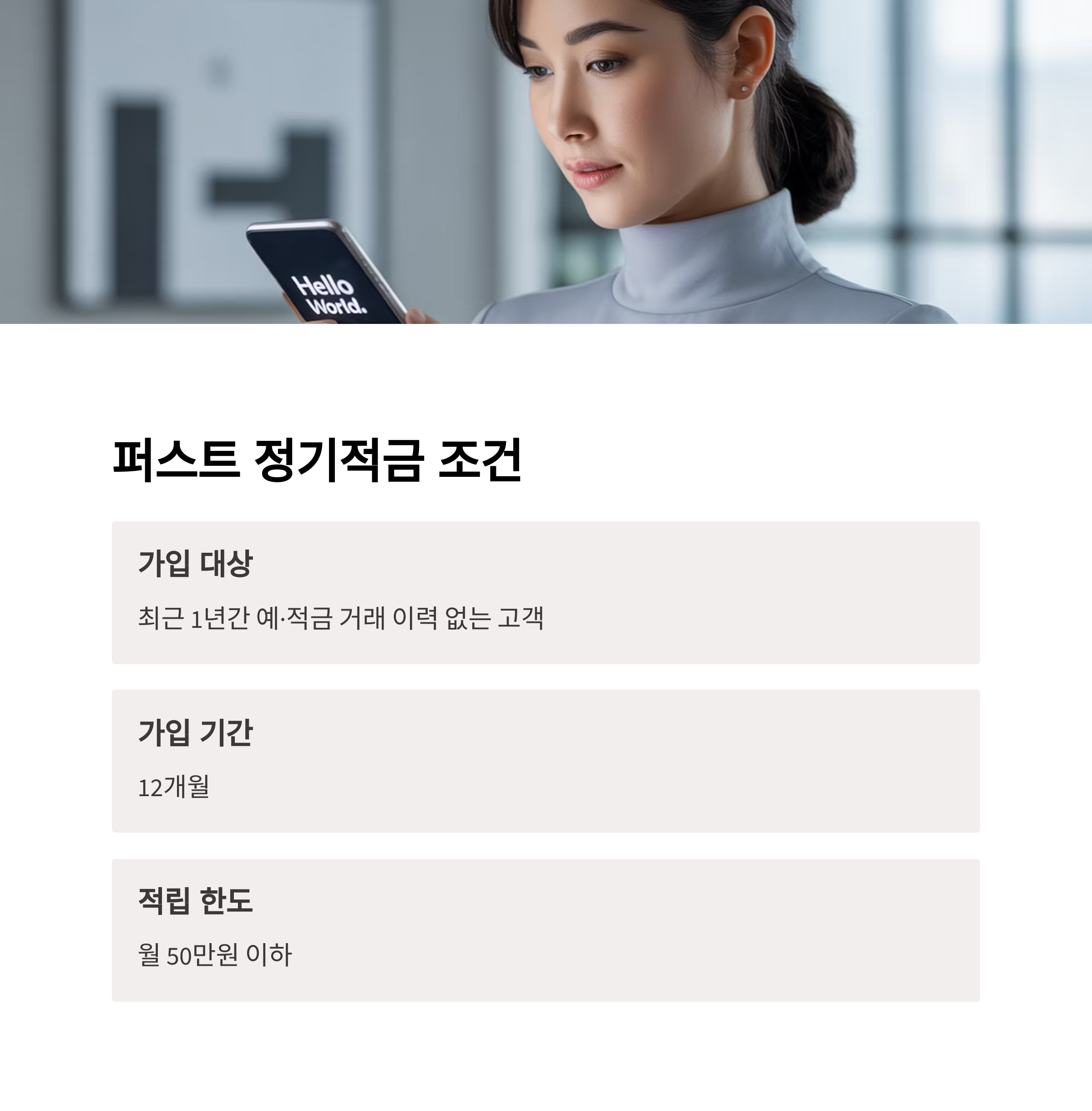 퍼스트 정기적금: 고금리로 매달 저축해 목돈 만들기