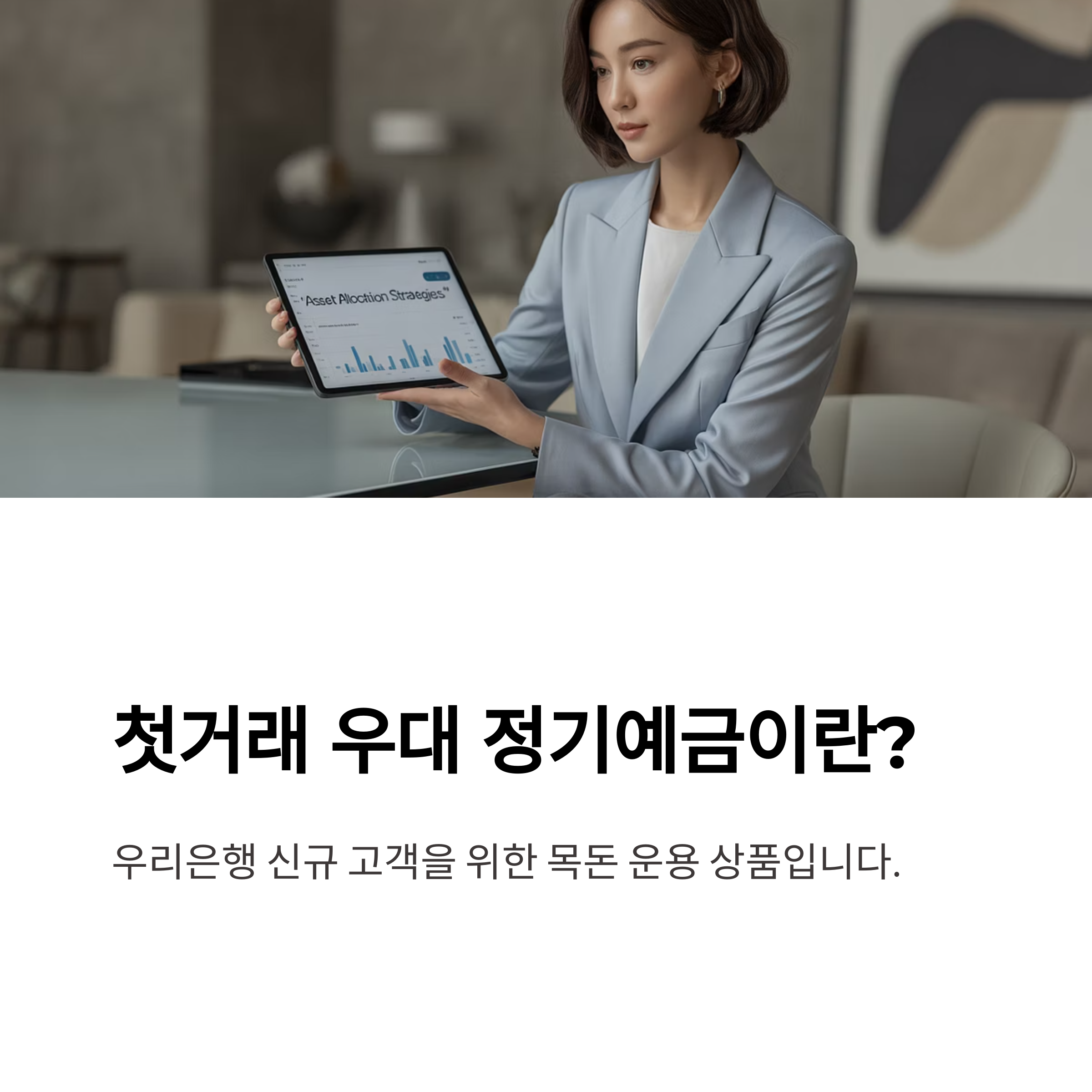 첫거래 우대 정기예금은 우리은행 신규 고객에게 제공되는 특별 상품으로, 목돈을 한 번에 예치하고