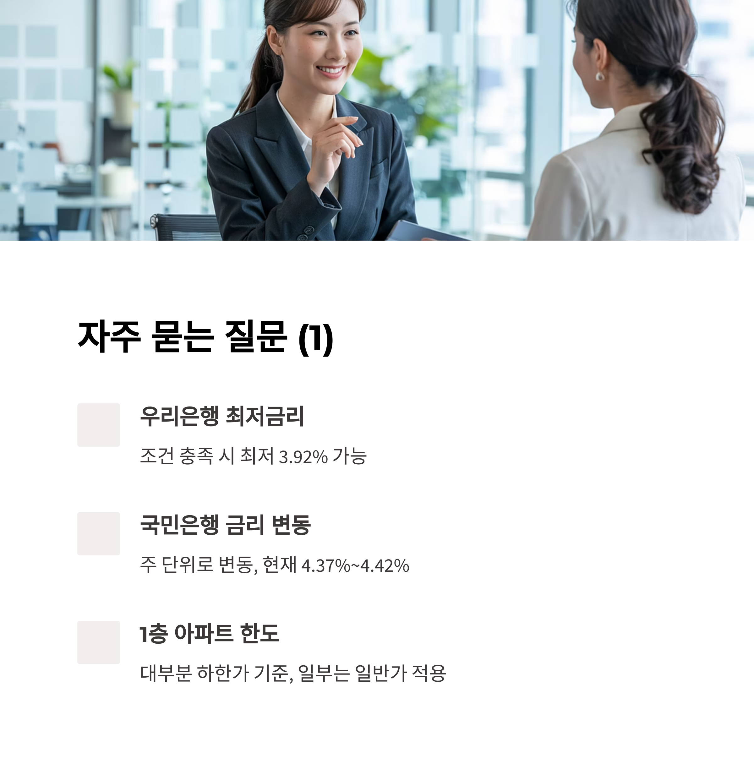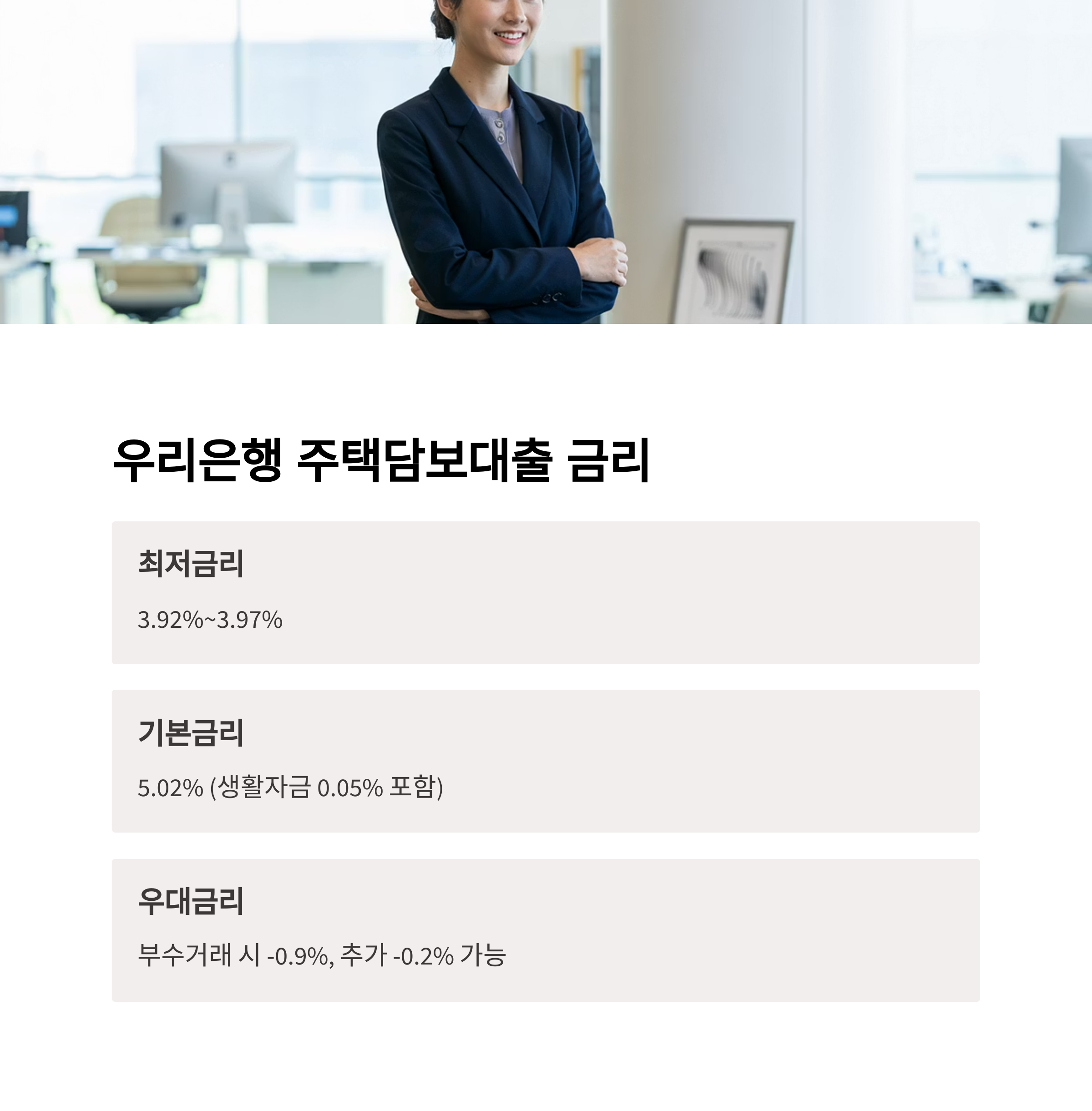 ✅ 우리은행 아파트담보대출 최저금리: 3.92%~3.97%