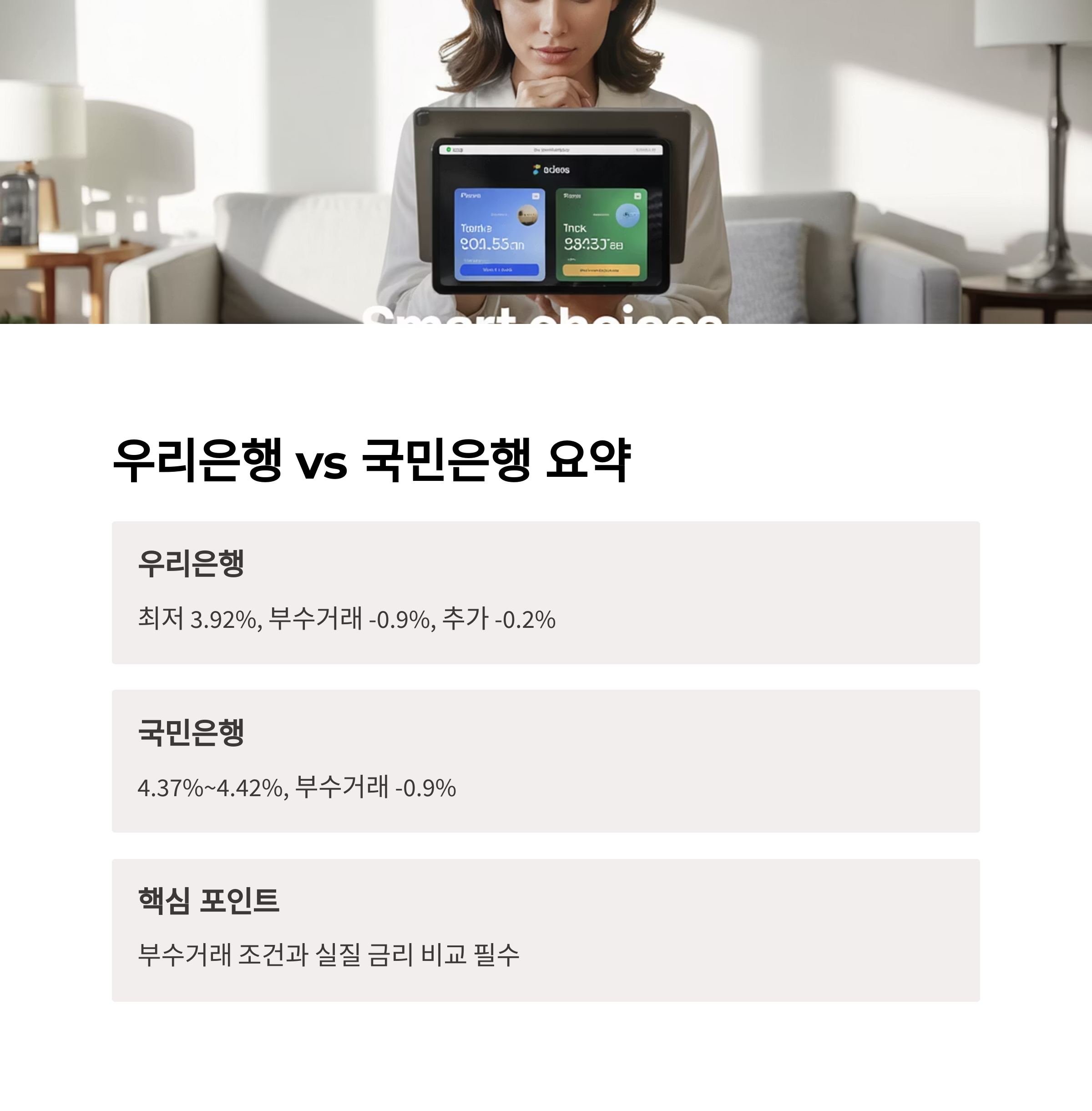 우리은행과 국민은행의 대출 조건을 비교하며, 어디가 더 유리한지 실질적으로 확인해보겠습니다.