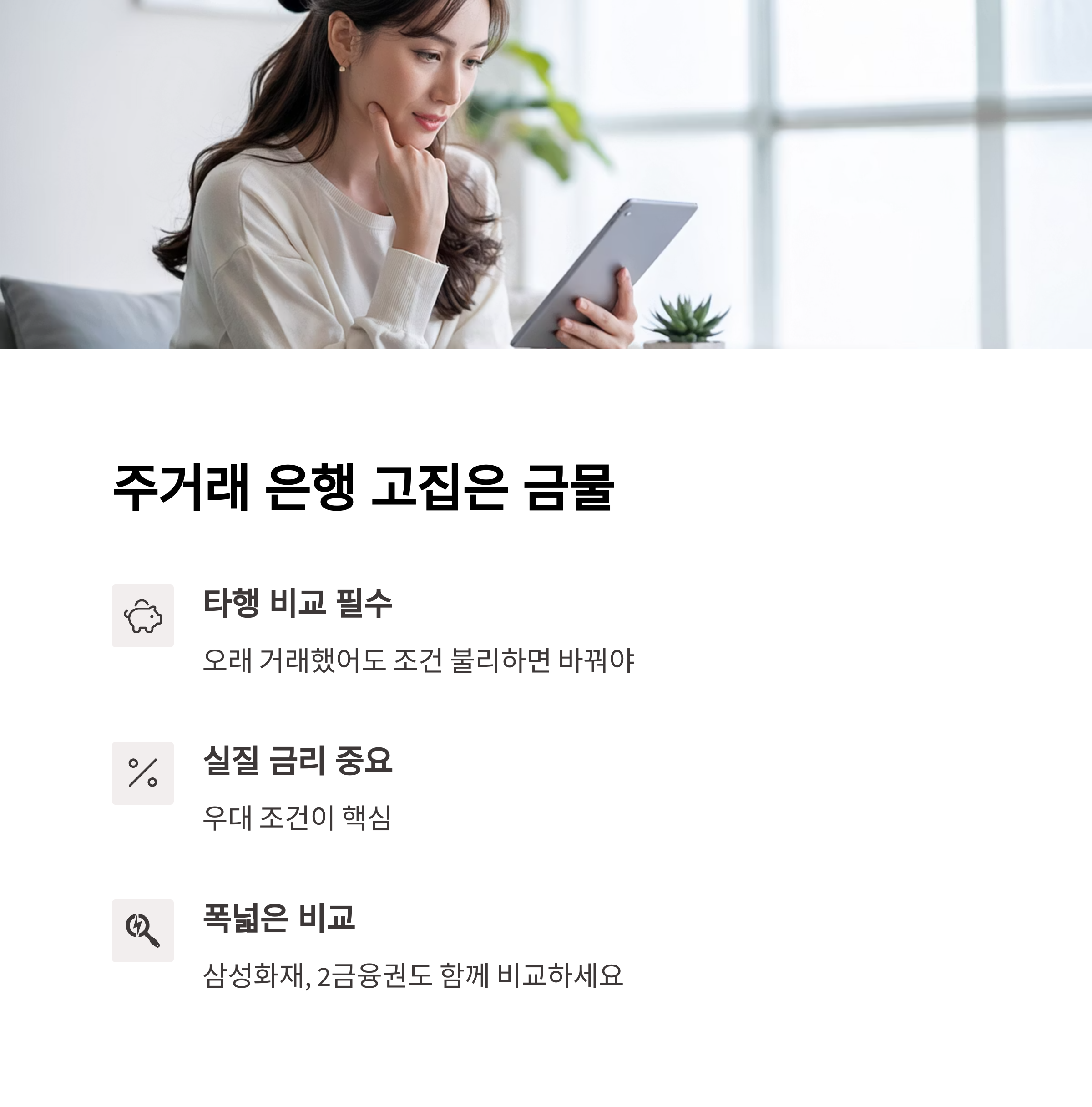 👉 오랜 기간 거래한 은행이라도 조건이 불리하다면 과감히 타행 비교 필수