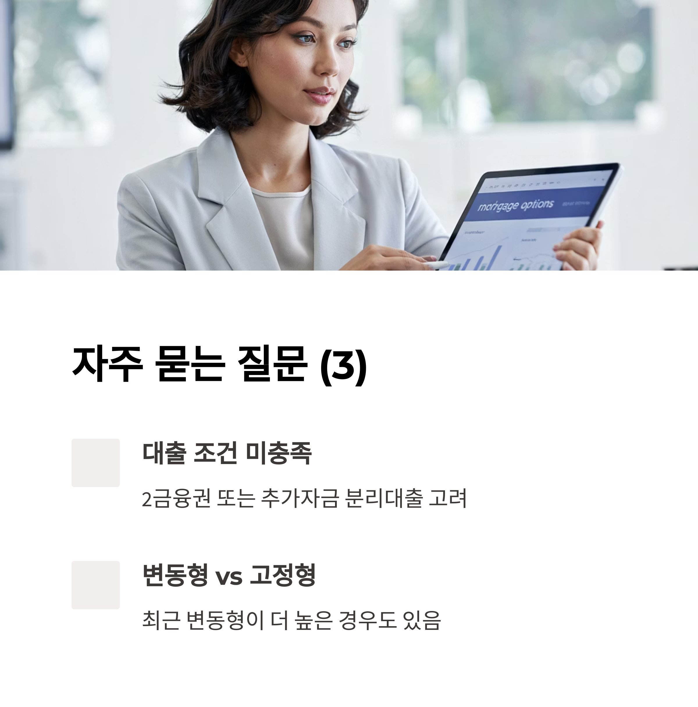 A8. 최근엔 변동형 금리가 더 높은 경우도 있으니, 현재 시점 금리를 꼭 비교하세요.