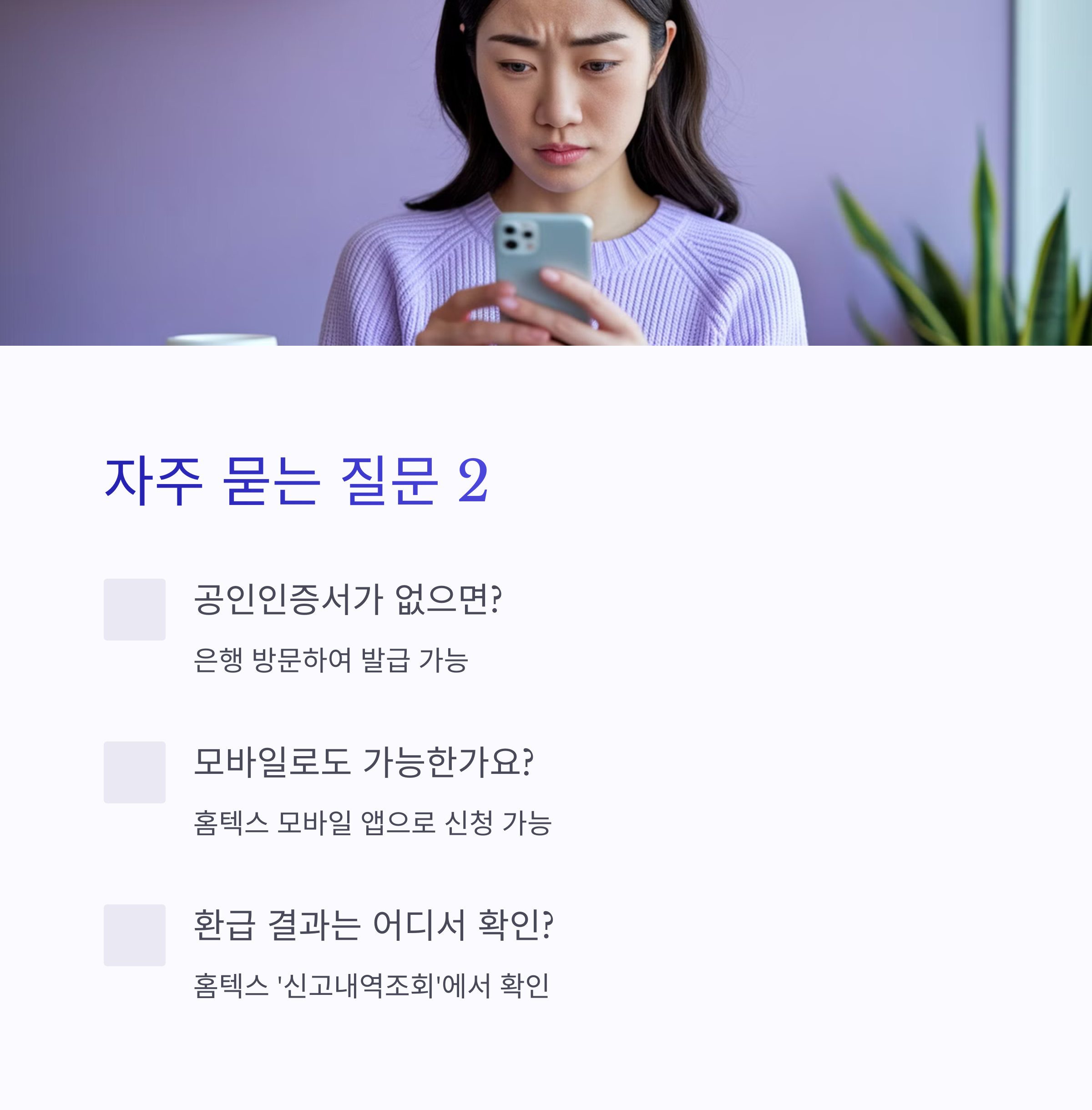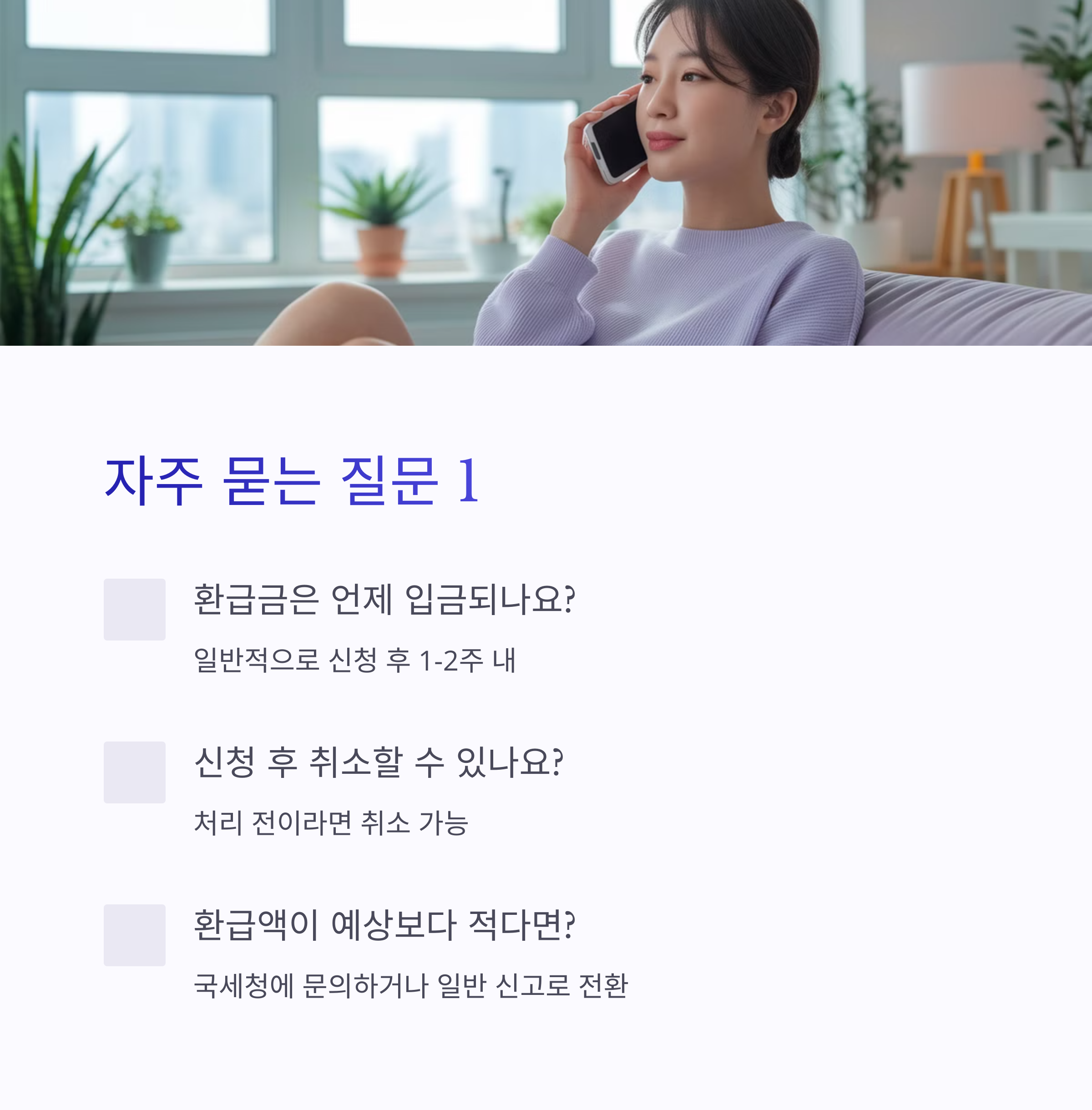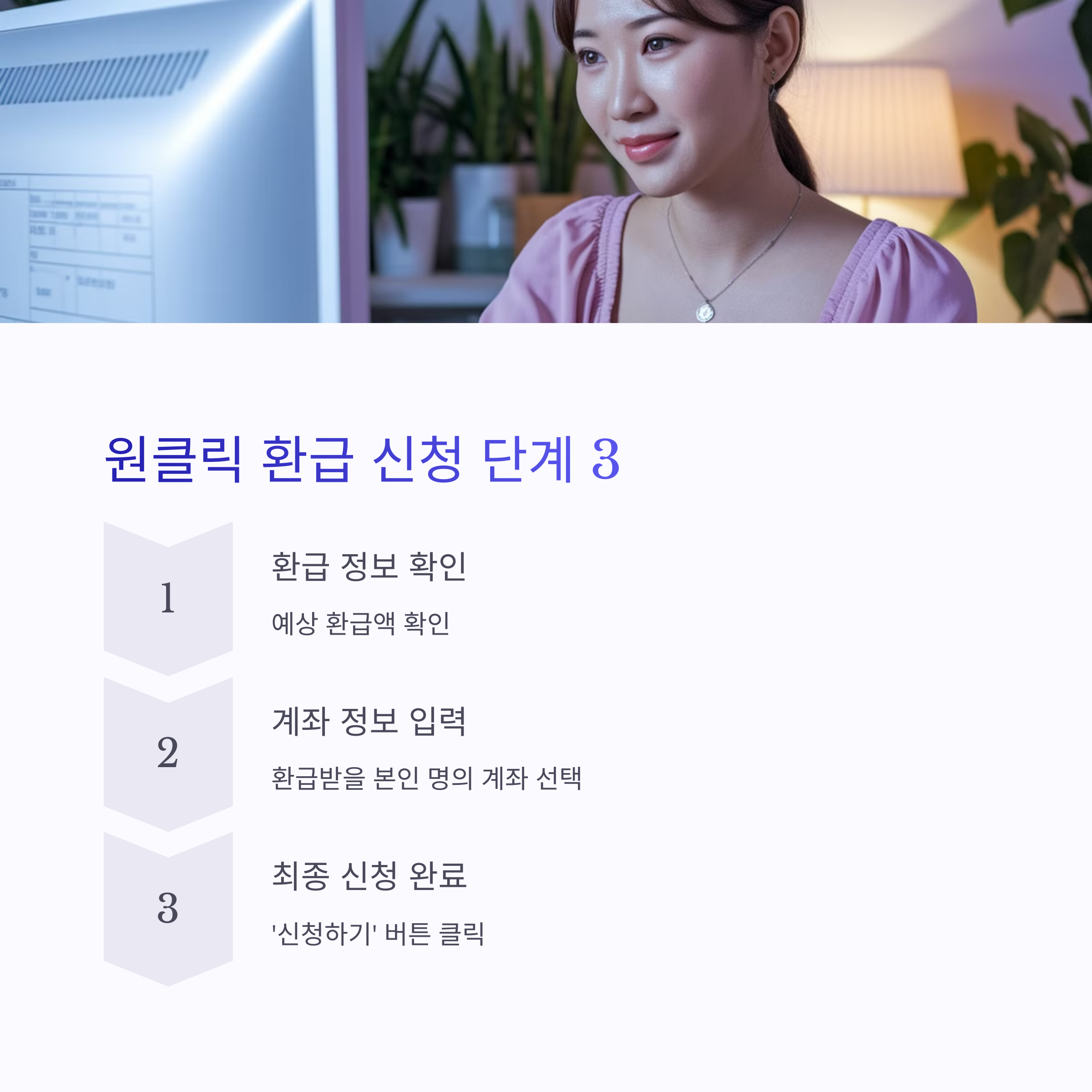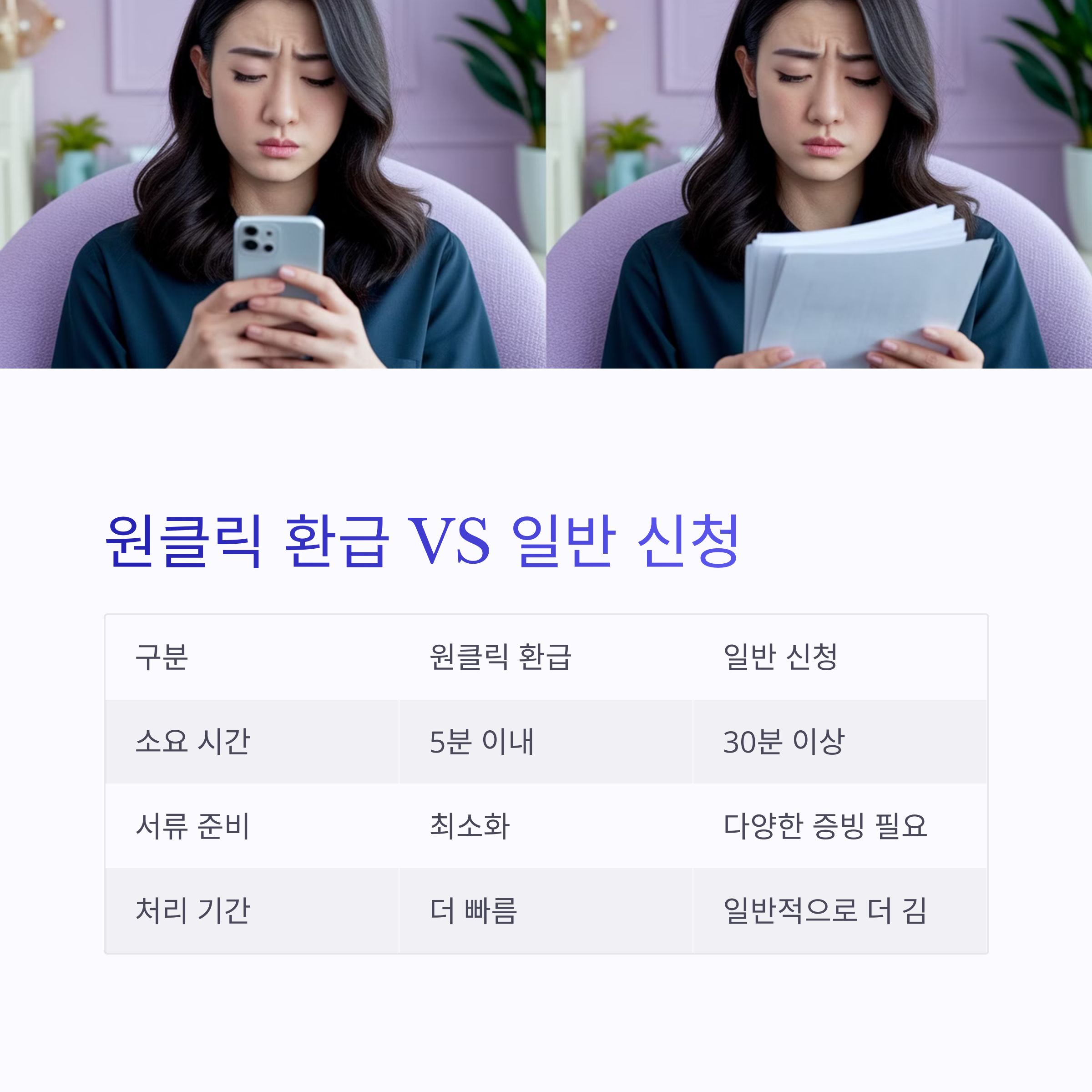 - 원스톱 처리: 한 번의 접속으로 환급 신청부터 처리까지 모든 과정이 진행됩니다.