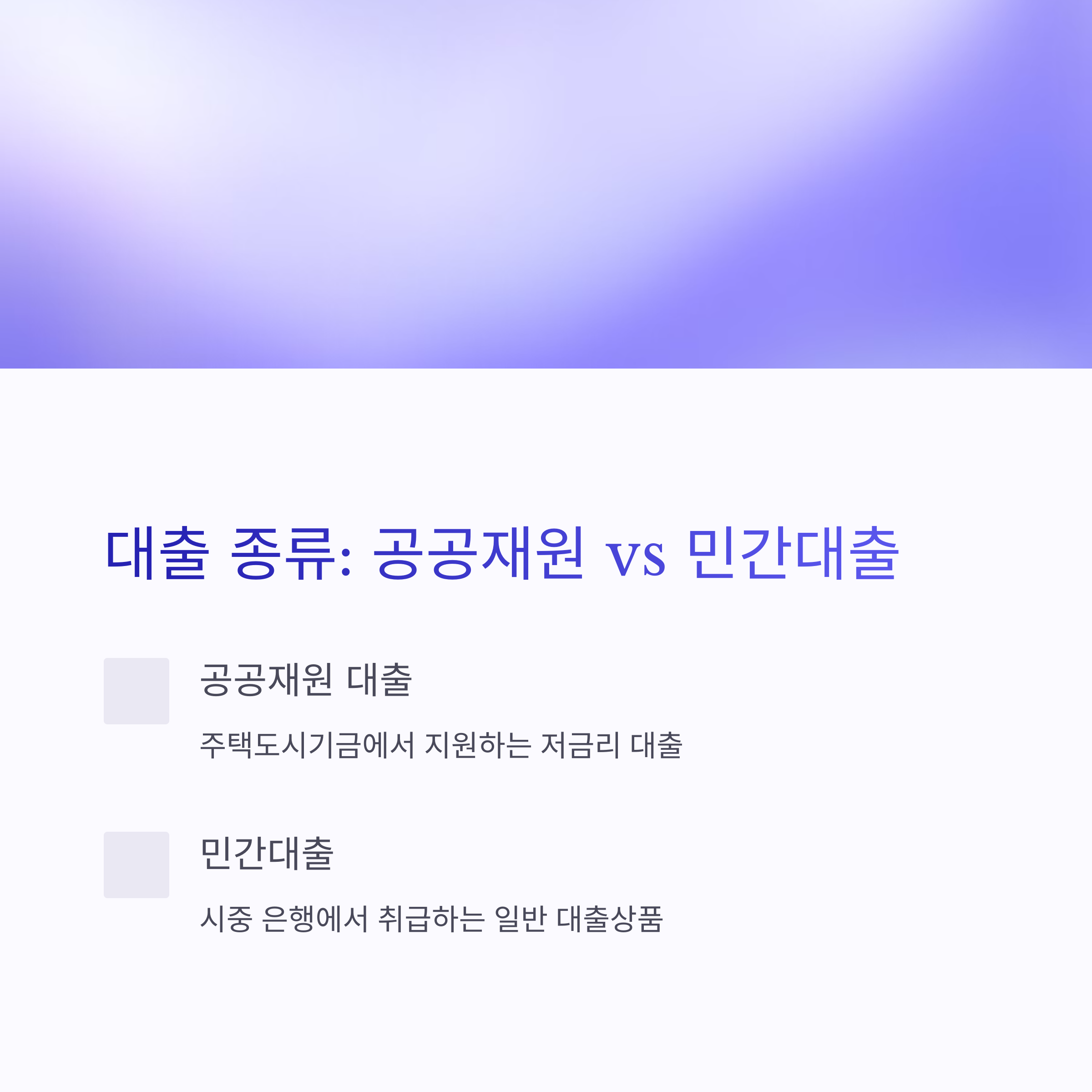 대출 재원에 따라 공공재원과 민간재원으로 나뉘며, 각기 다른 조건을 가집니다.