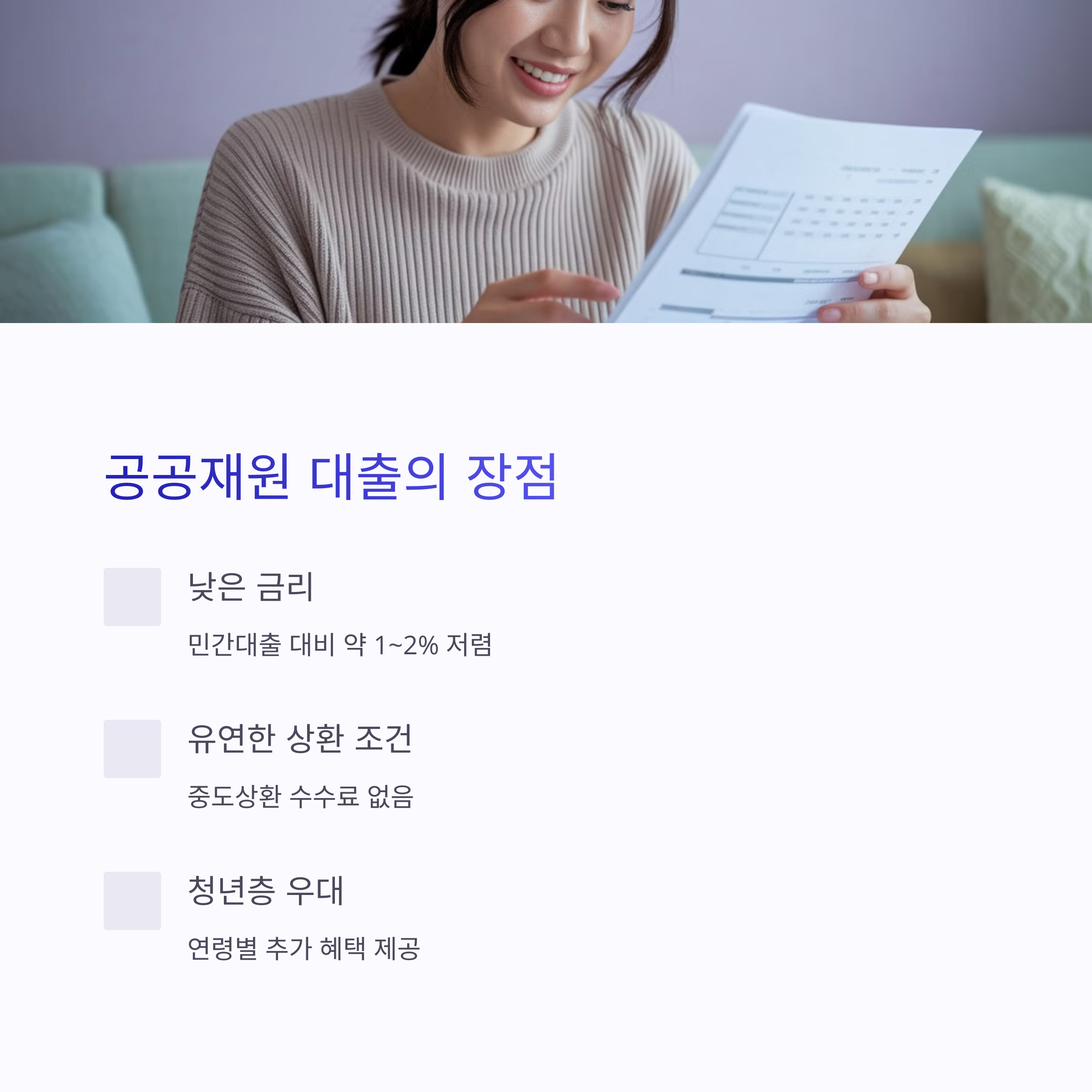 ✅ 공공재원 대출을 선택하면 중도상환 수수료 없이 자유롭게 상환 가능
