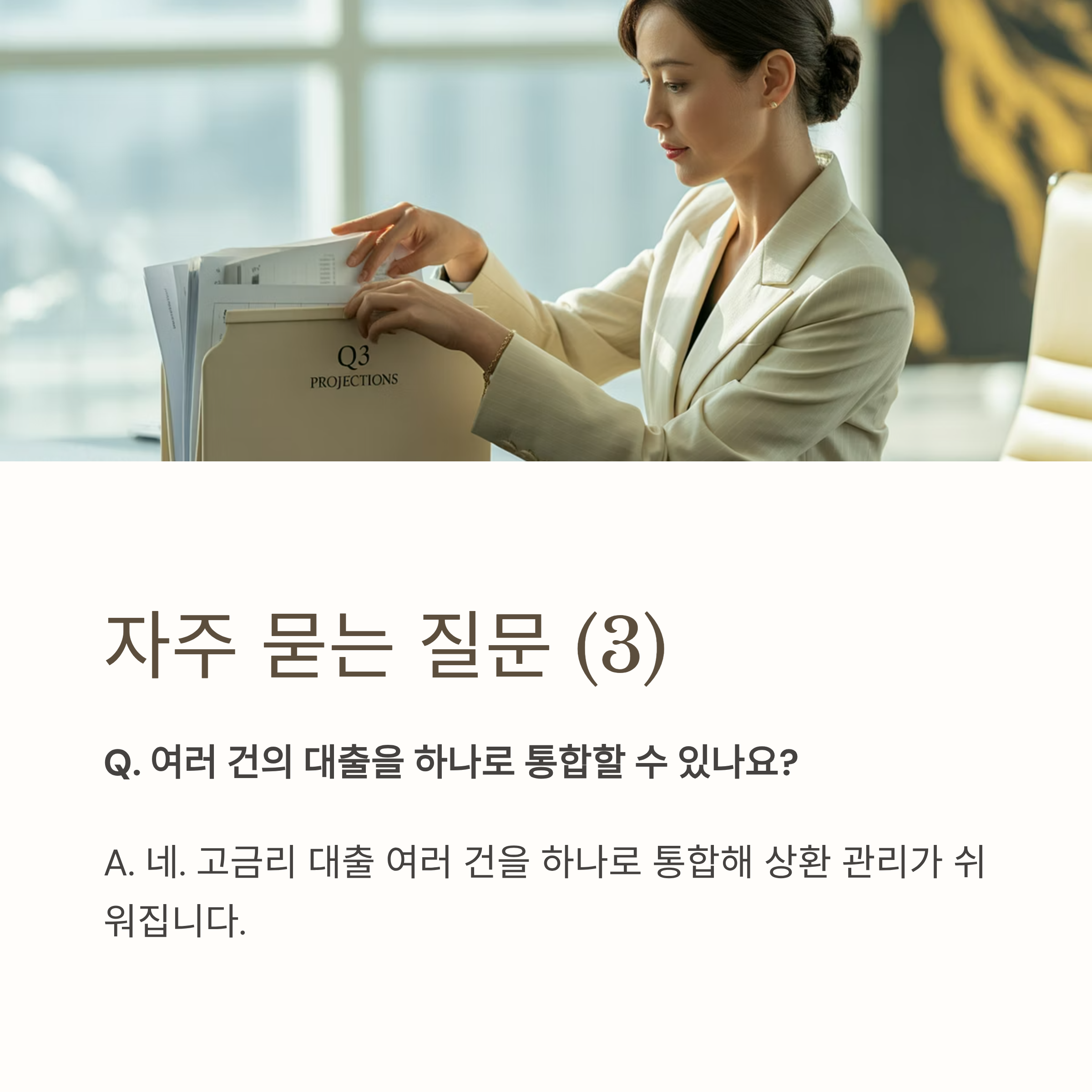 A5. 네. 고금리 대출 여러 건을 하나로 통합해 상환 관리가 쉬워집니다.