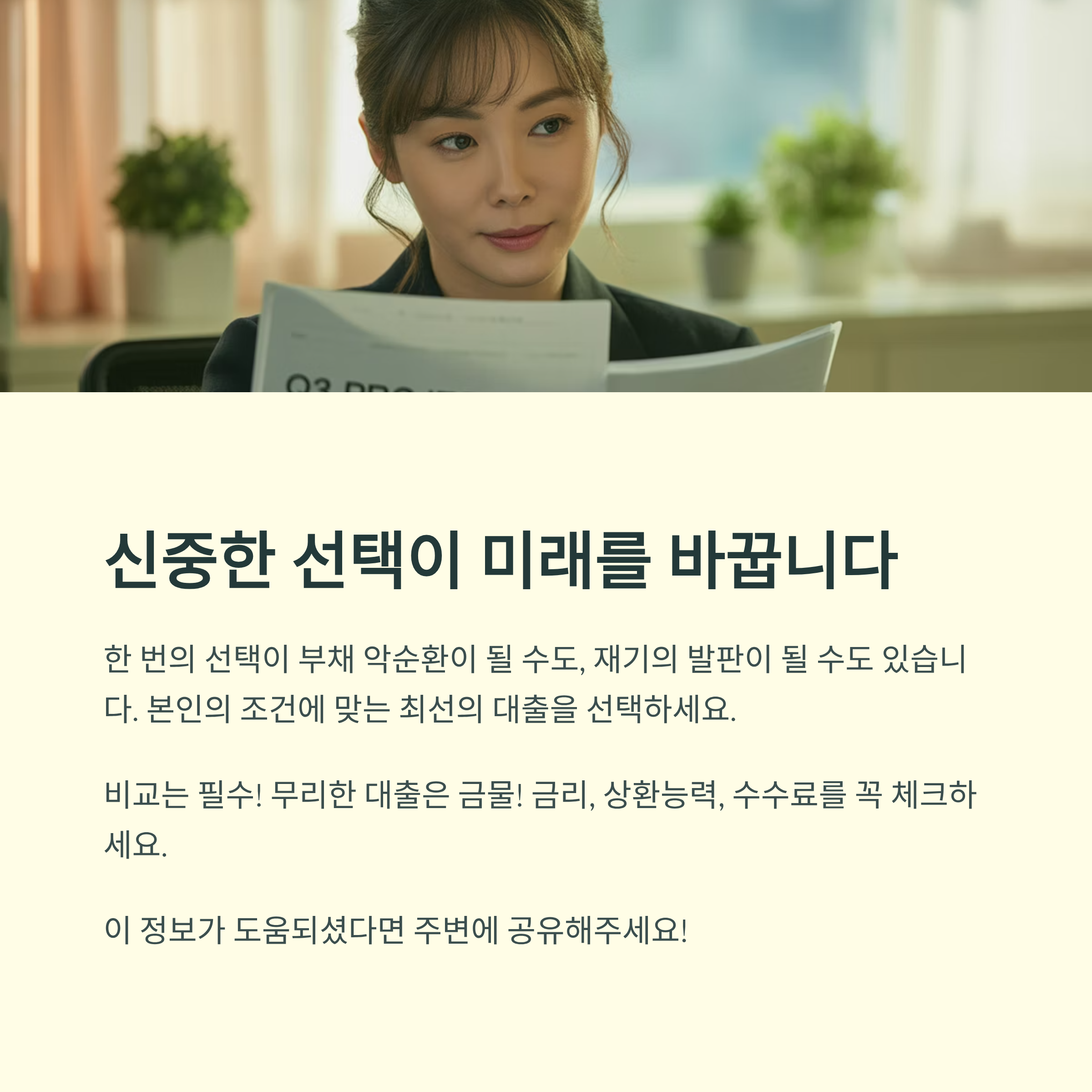비교는 필수! 무리한 대출은 금물! 대출 전에 금리, 상환능력, 수수료를 꼭 체크하세요.