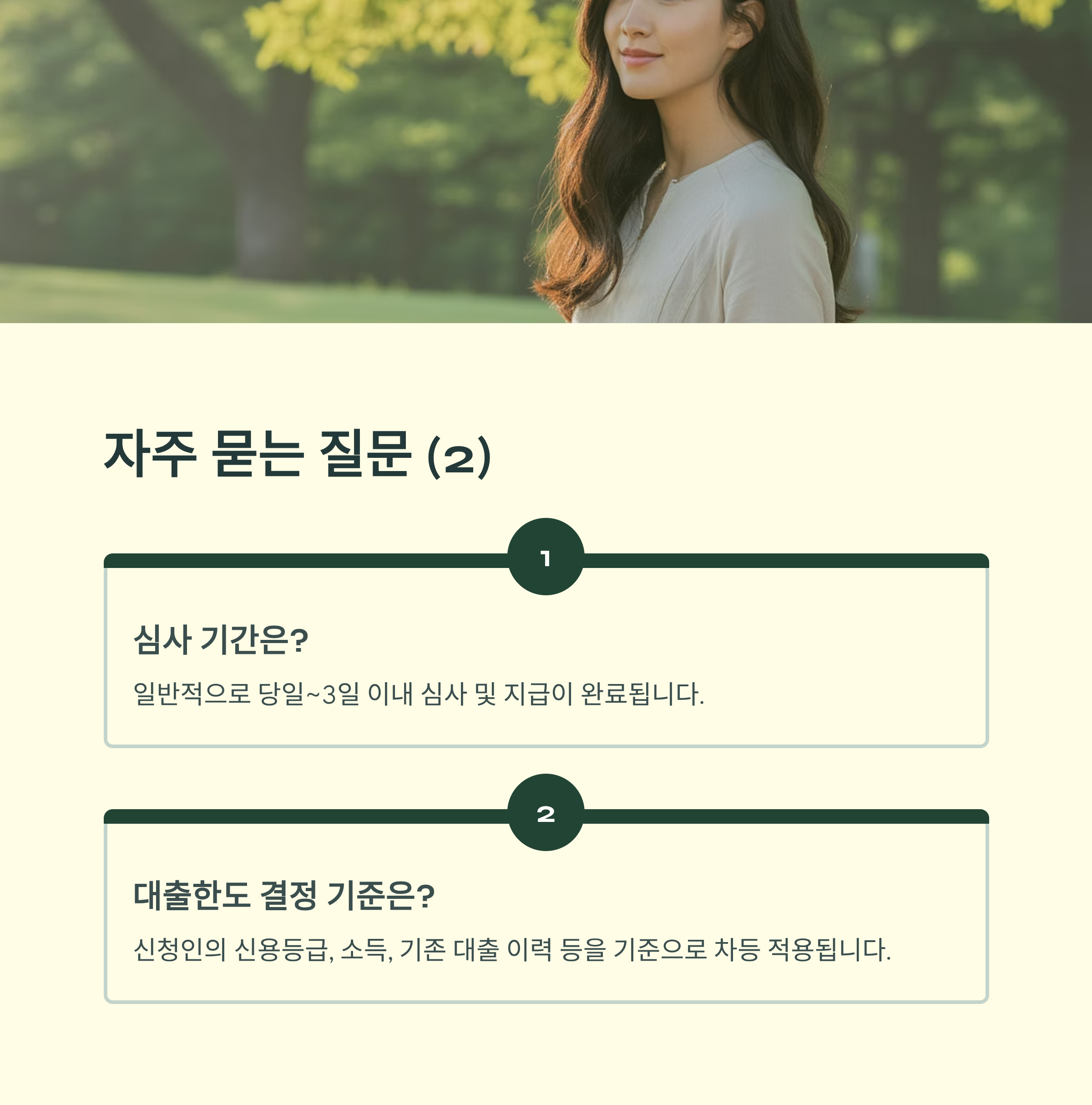 A3. 일반적으로 당일~3일 이내 심사 및 지급이 완료됩니다.