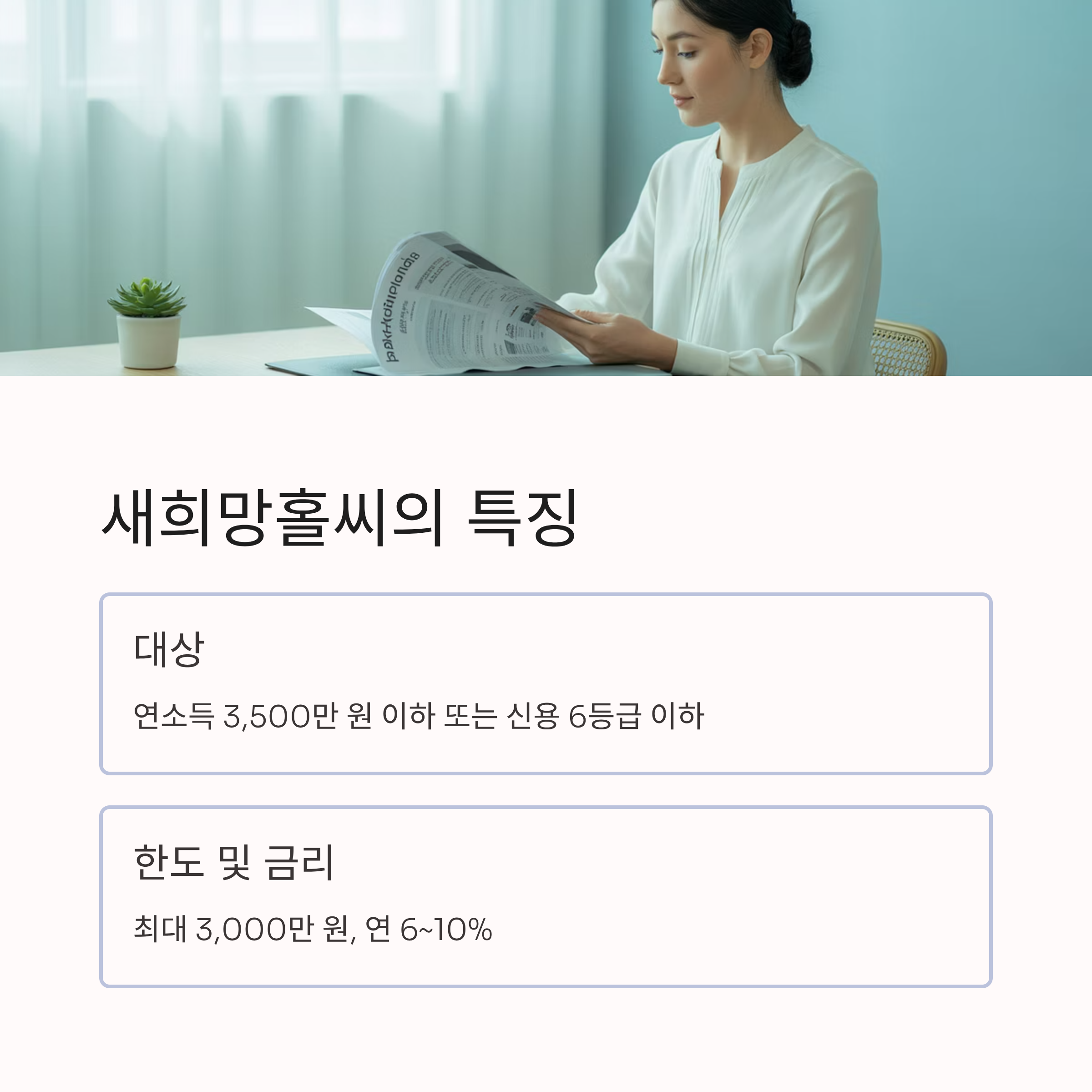 ✅ 대상: 저소득·저신용자 (연소득 3,000만 원 이하 및 신용 6등급 이하)