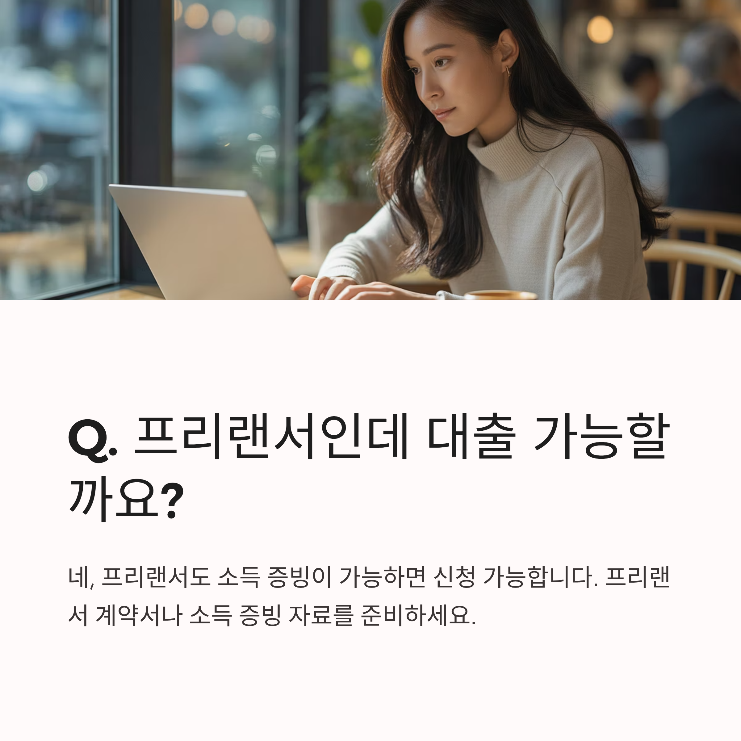 A2. 대부분 상품은 소득이 있어야 합니다. 단, 프리랜서, 일용직 소득자는 증빙 가능 시 신청 가능합니다.