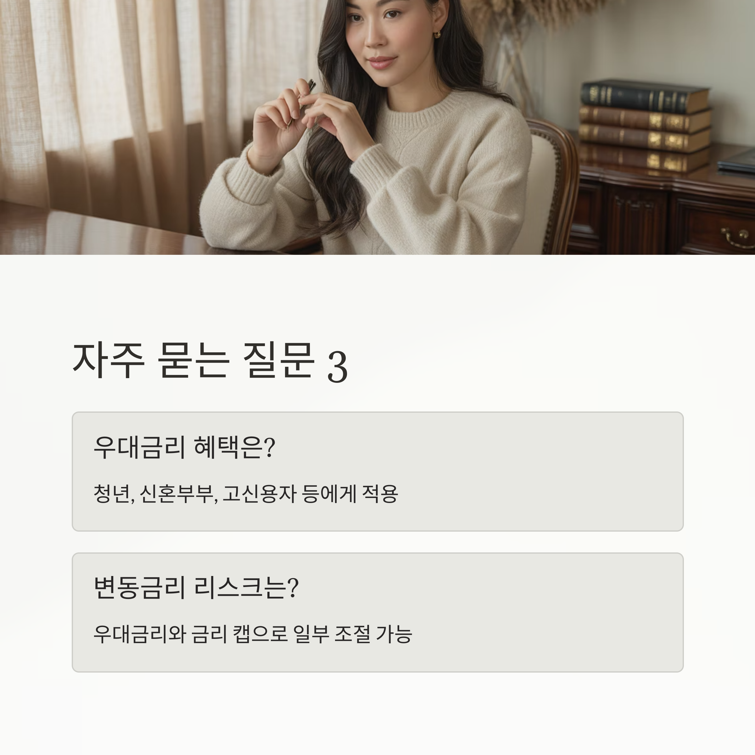 A6. 금리 변동 리스크는 존재하지만, 우대금리와 금리 캡(CAP)을 통해 일부 조절이 가능합니다.