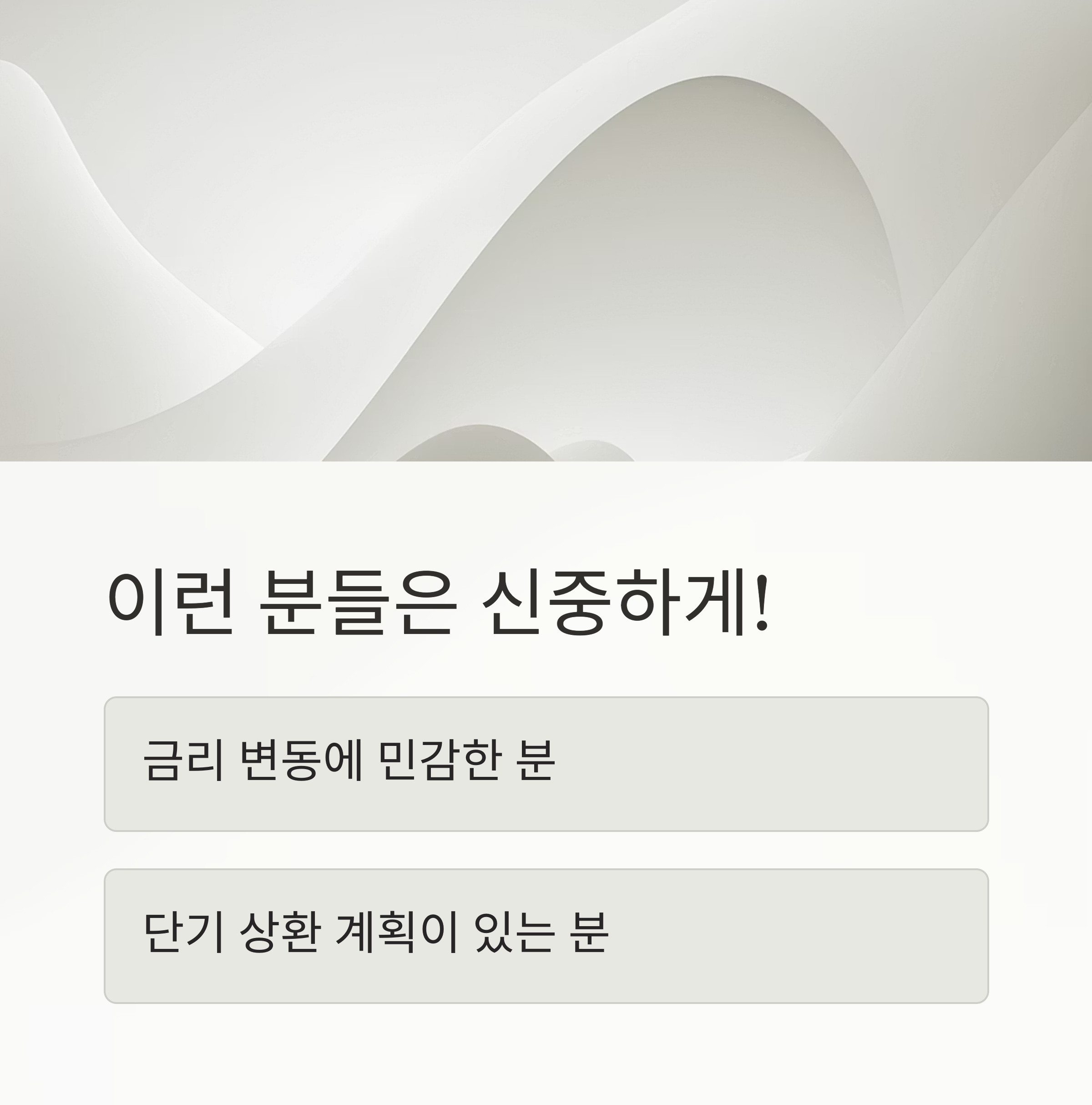 ✅ 단, 잦은 금리 변동에 민감하거나, 단기 상환 계획이 있는 분은 신중히 접근해야 합니다.