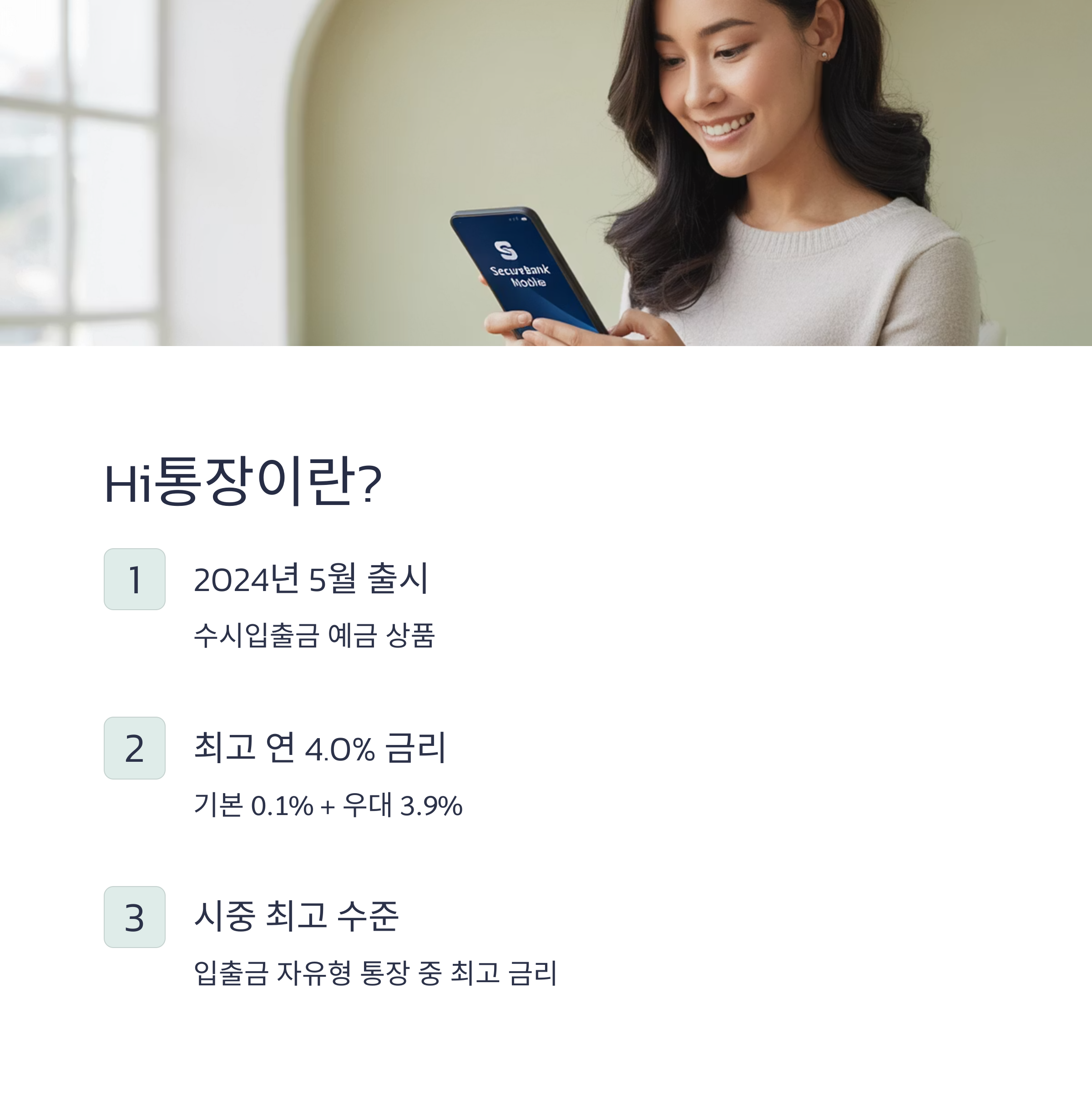 💡 Hi통장은 자금이 묶이지 않으면서도 이자를 챙길 수 있는 구조로 설계되었습니다.