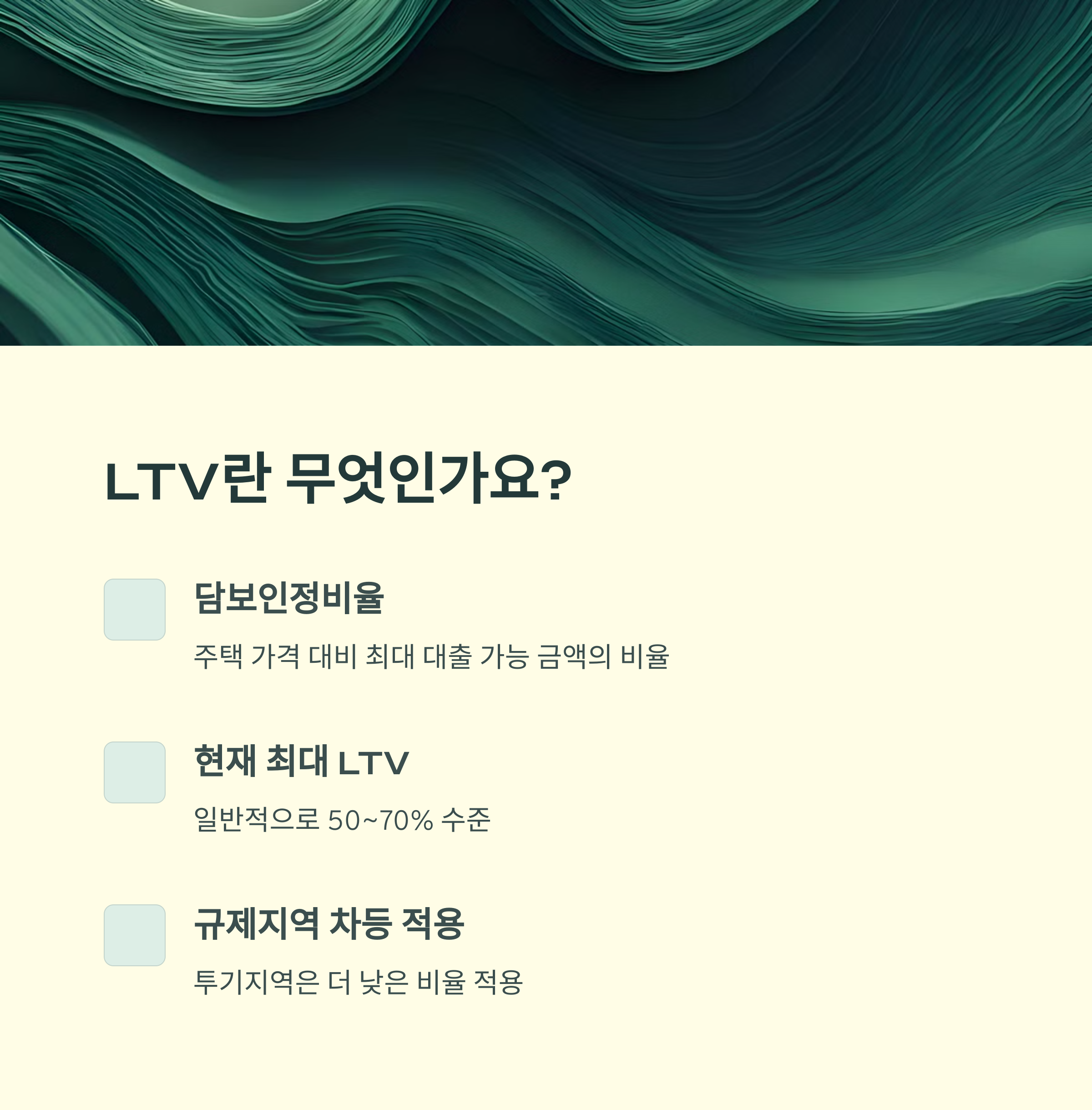 LTV(Loan To Value Ratio)는 주택 시세 대비 대출 가능 비율을 의미합니다.