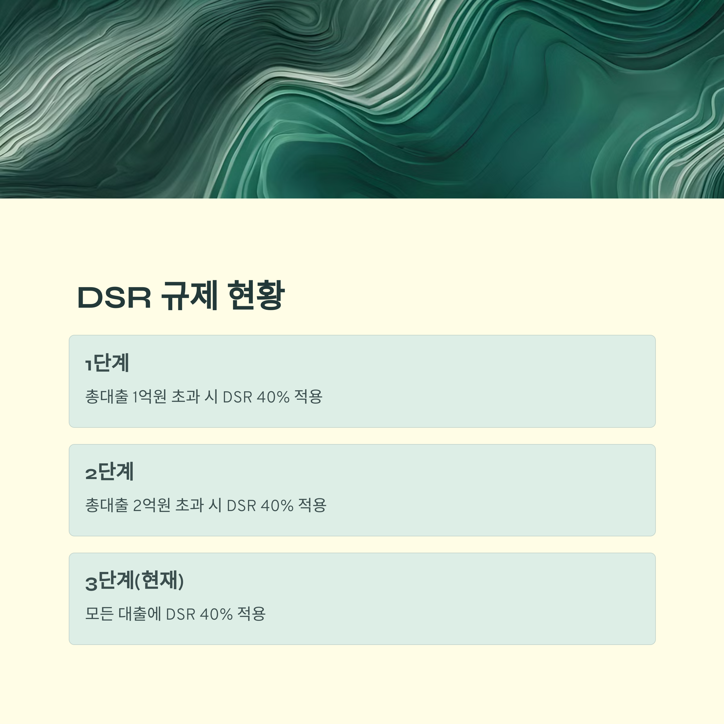 A4. 대출 총액 1억 원 초과 시 DSR 적용, 연소득 대비 대출 비율 제한이 있습니다.