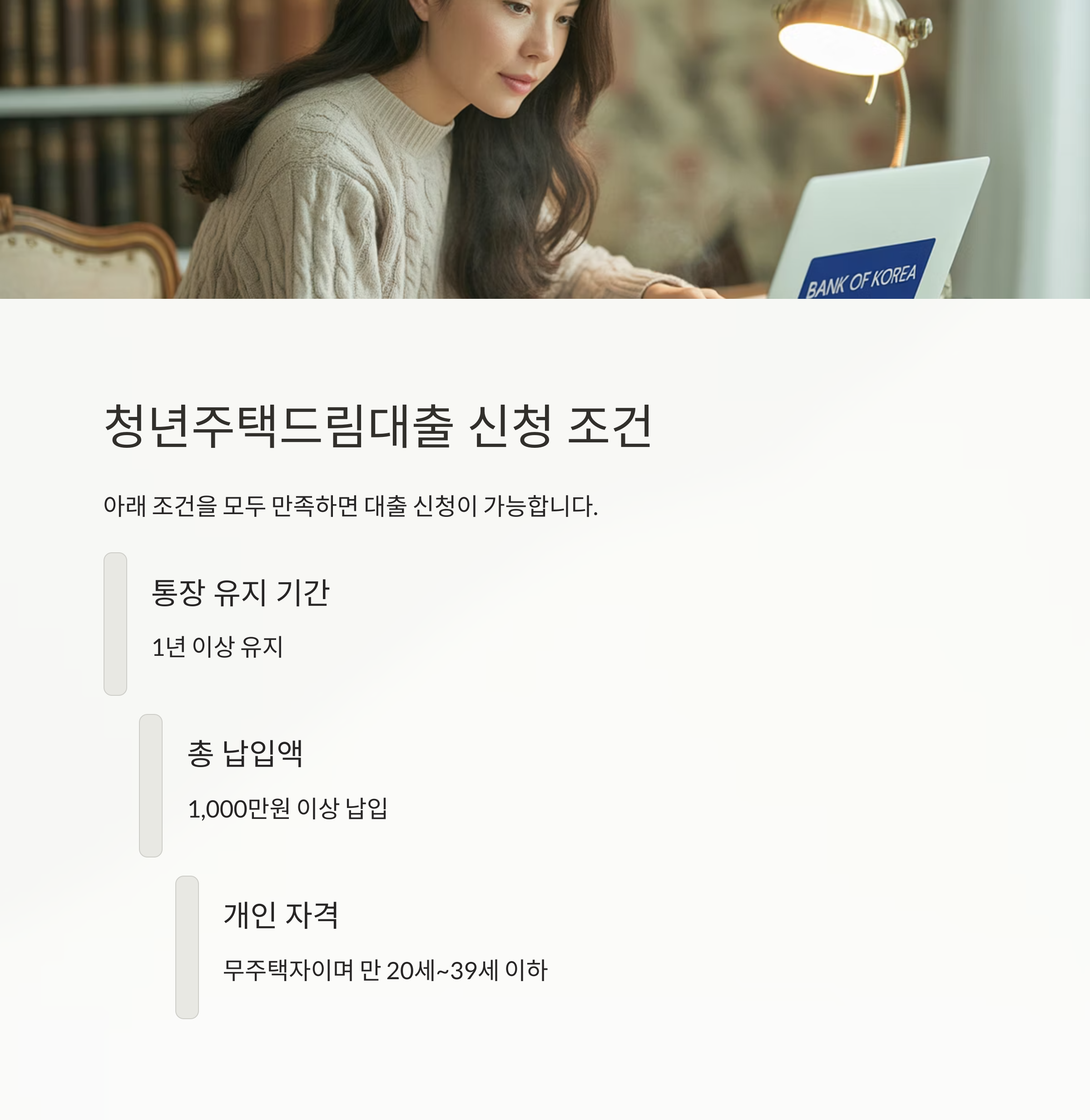 아래 조건을 만족하면 대출 신청이 가능합니다.