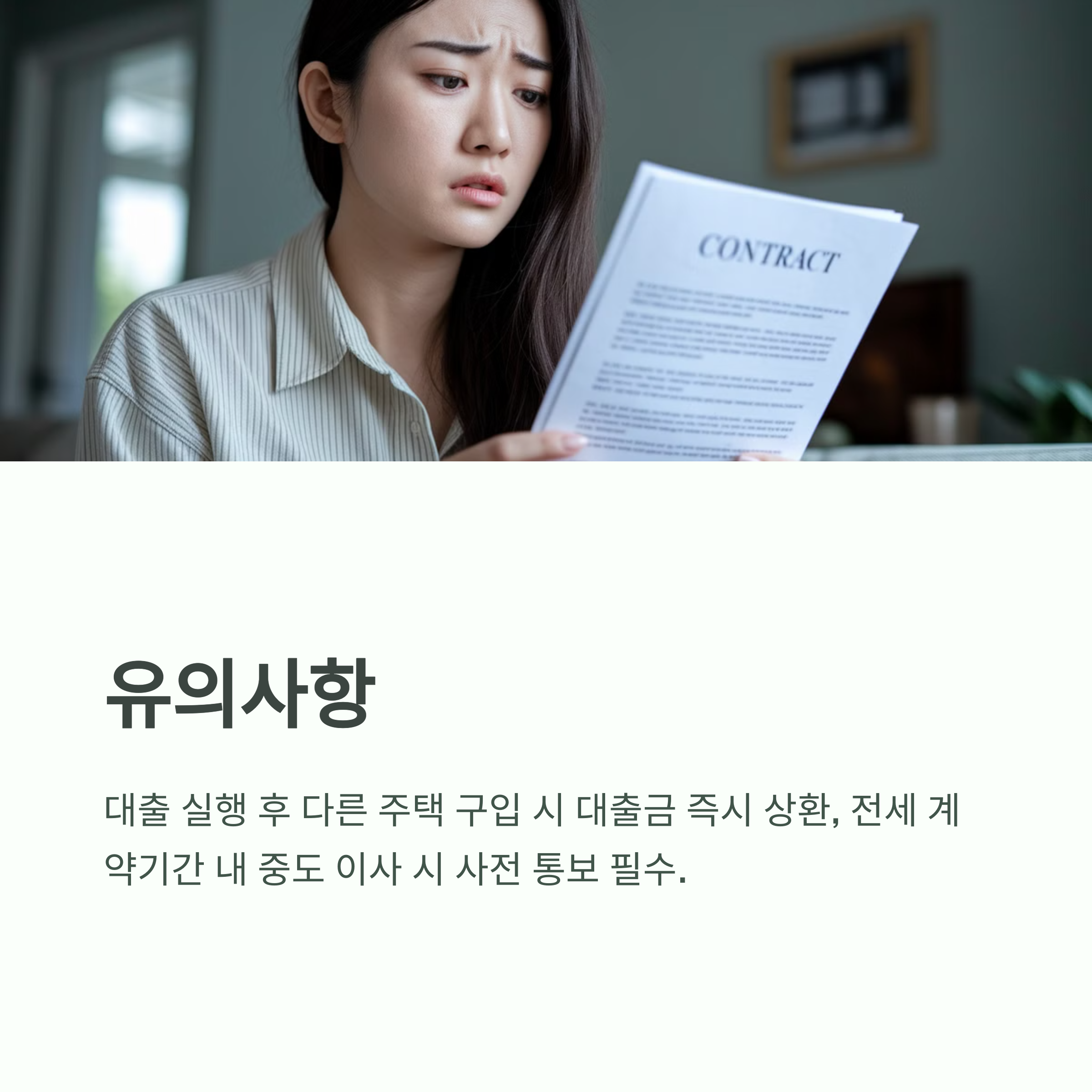 - 대출 실행 후 유주택자가 되면 상환해야 함