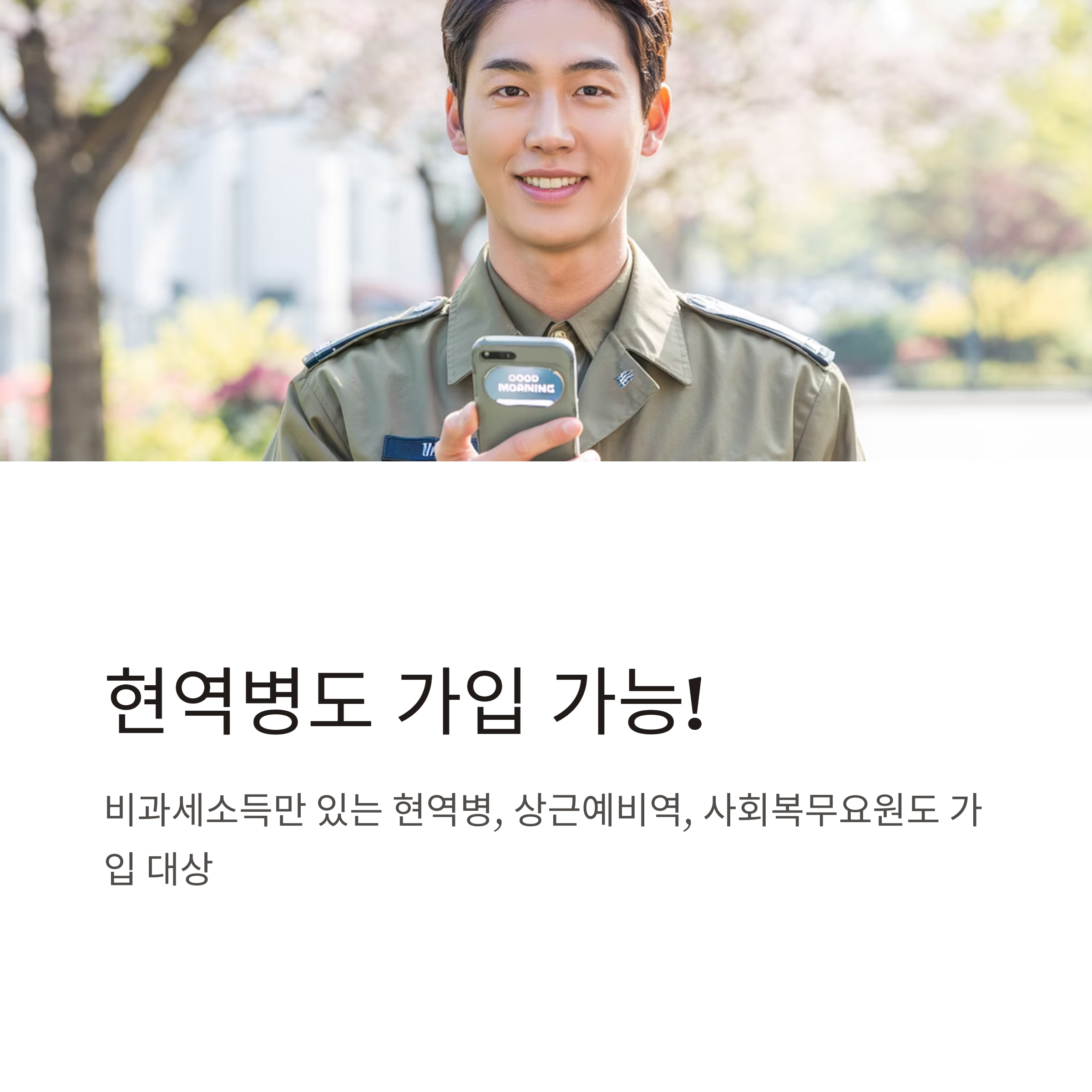 ▶ 현역병도 가입 가능: 비과세소득만 있는 현역병, 상근예비역, 사회복무요원도 대상