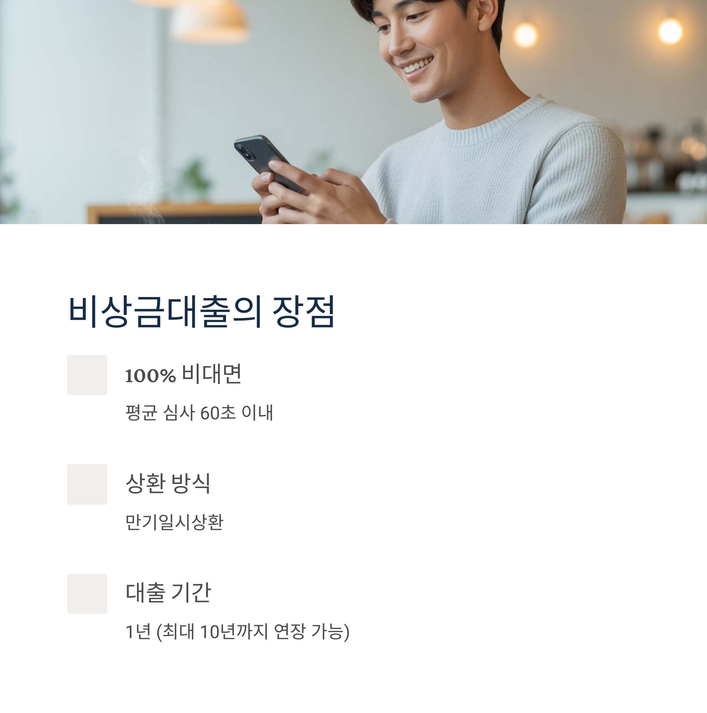✔ 진행 방식: 100% 비대면, 평균 심사 60초 이내