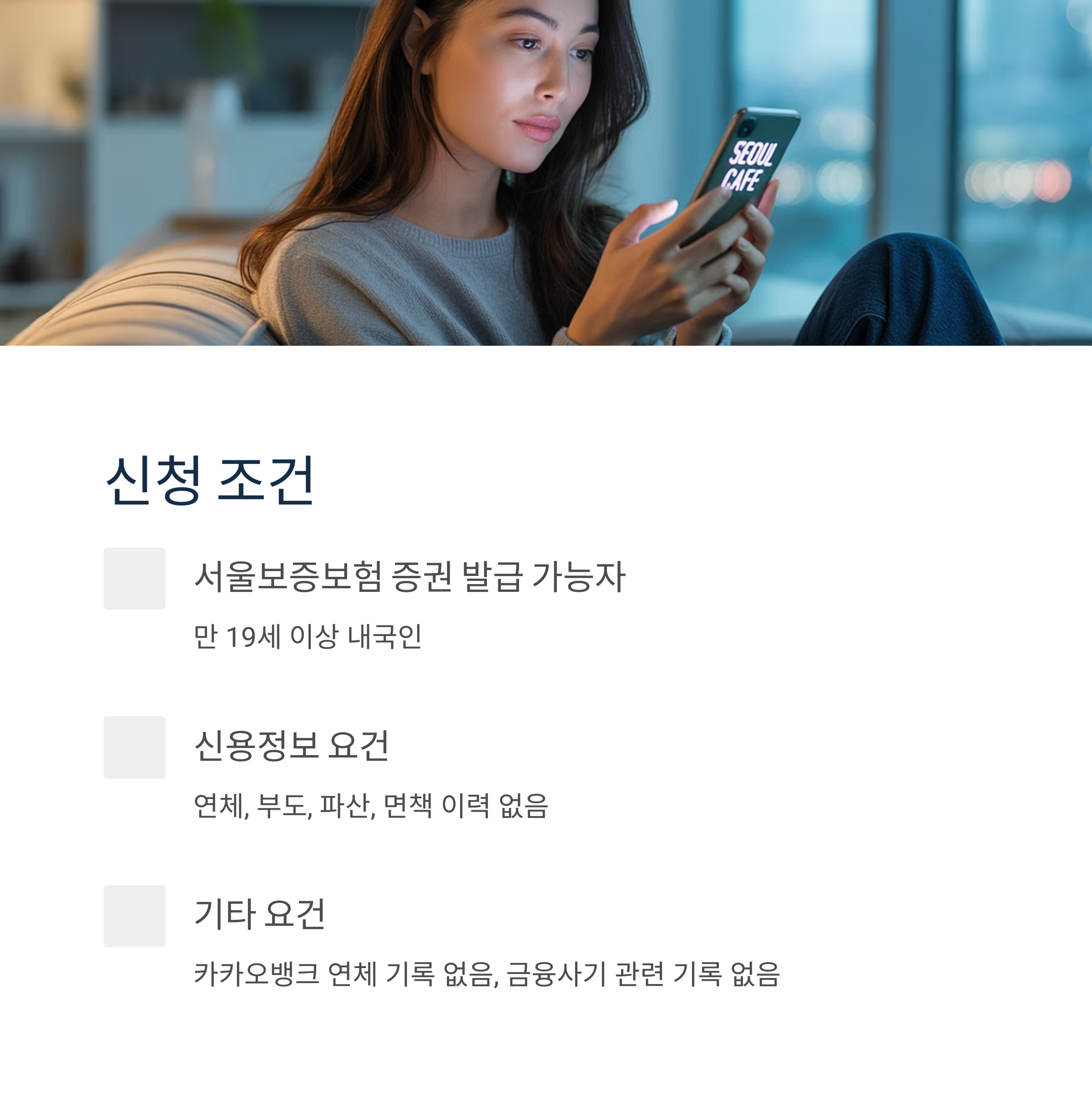 ✔ 대출 대상: 서울보증보험 보험증권 발급 가능한 만 19세 이상 내국인