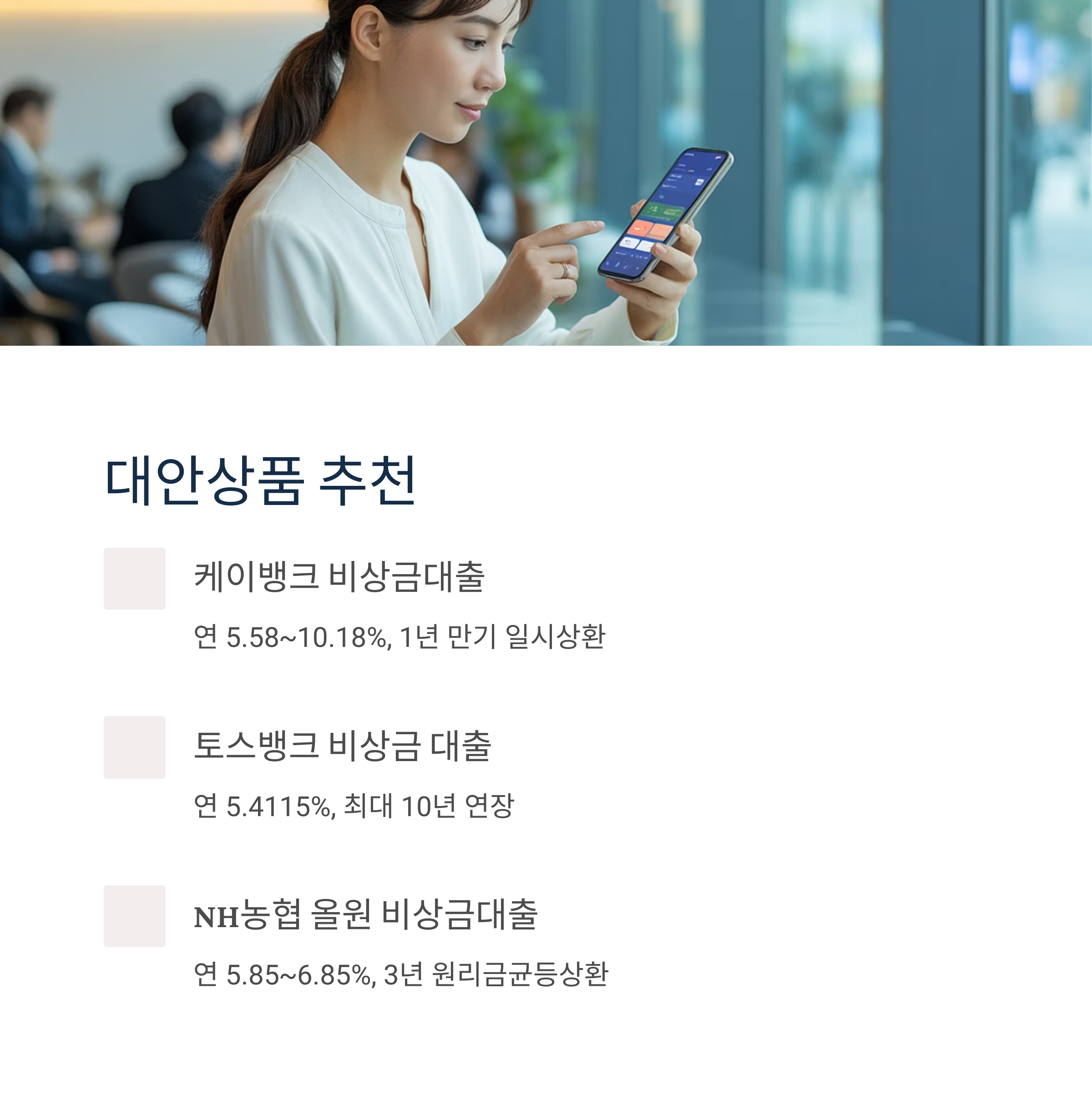 본인의 조건에 맞는 대출인지 꼼꼼히 확인하고, 필요하다면 대안상품도 비교해보세요.