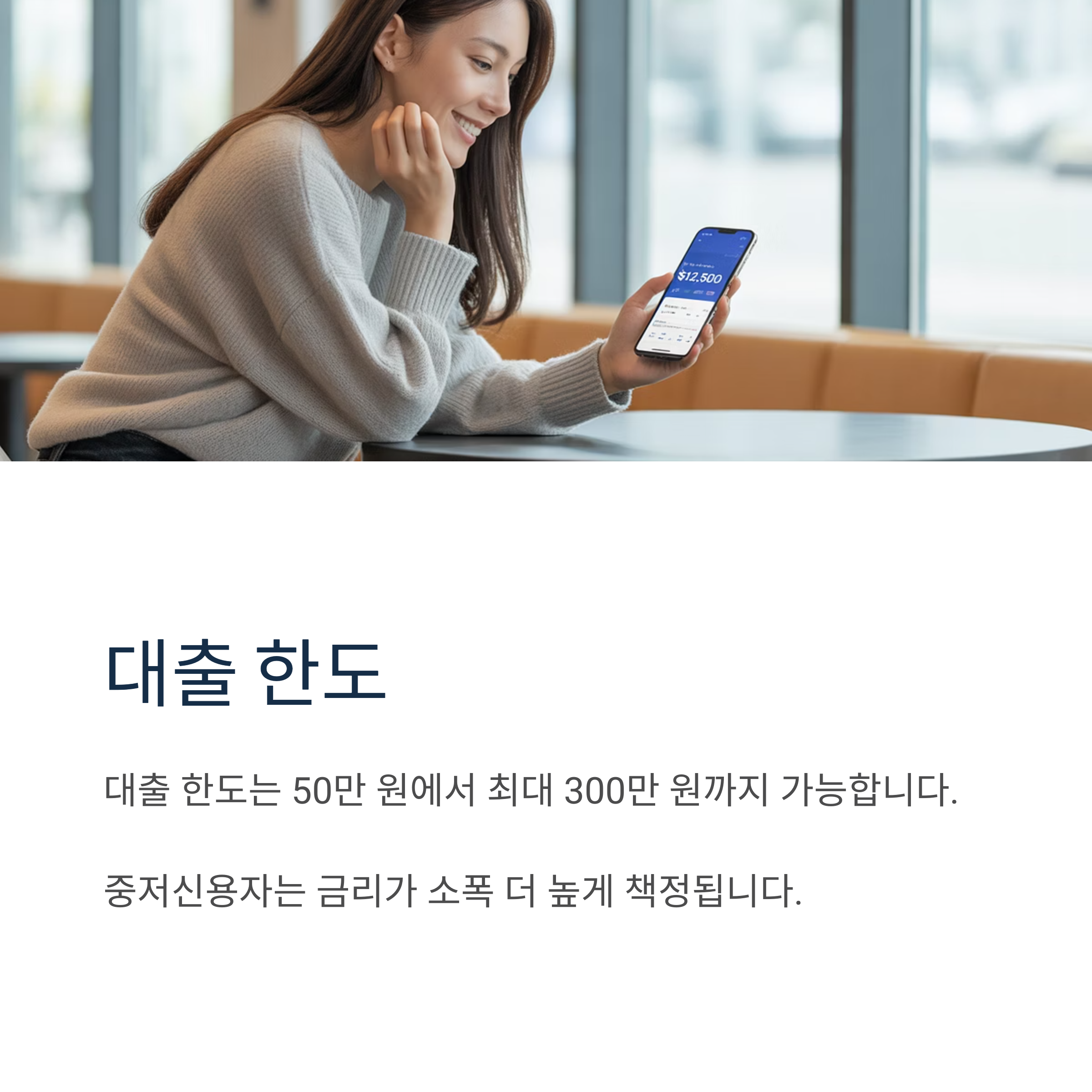 ✔ 대출 한도: 최소 50만 원 ~ 최대 300만 원