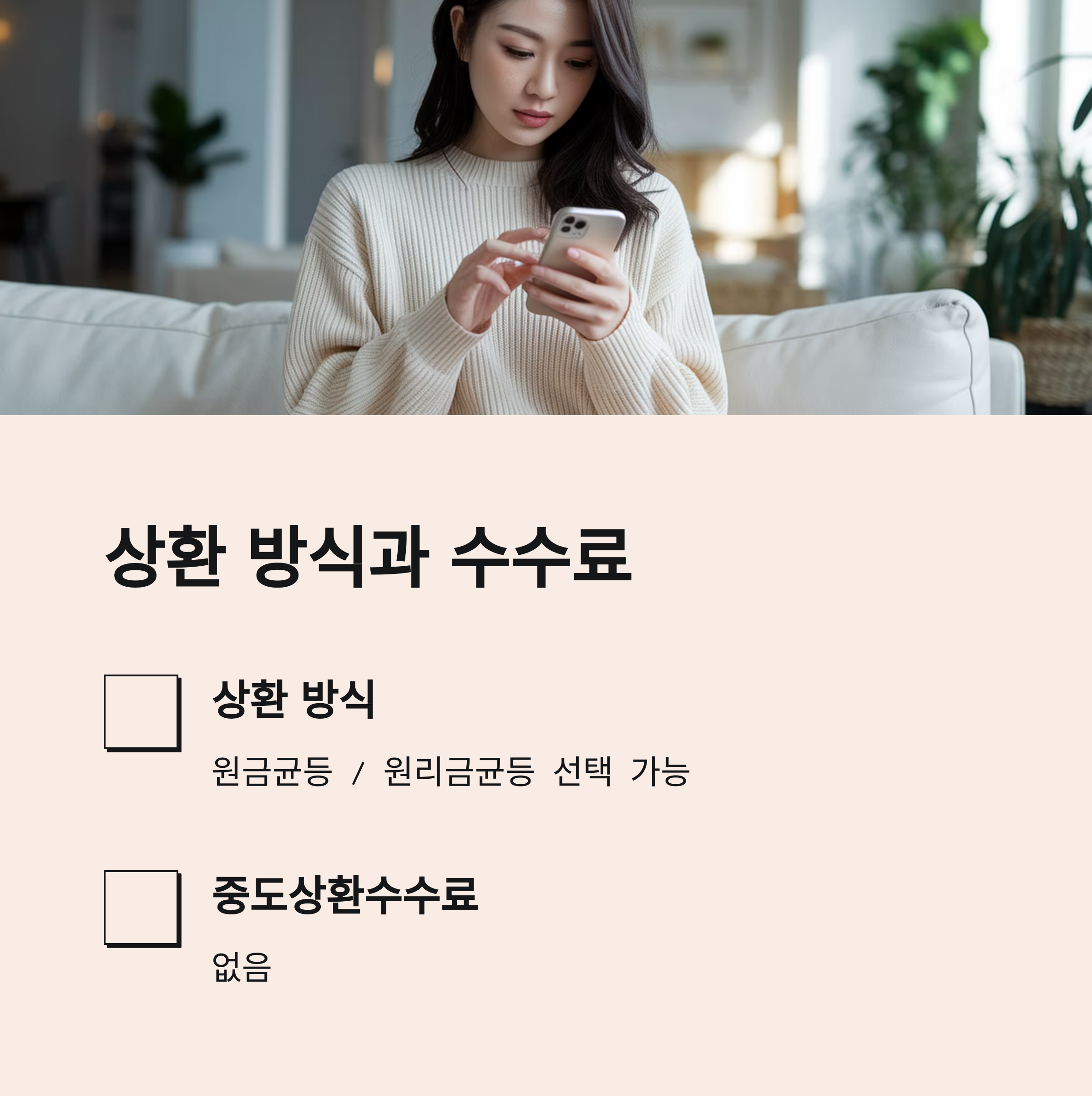 - 상환 방식: 원금균등 / 원리금균등 선택 가능