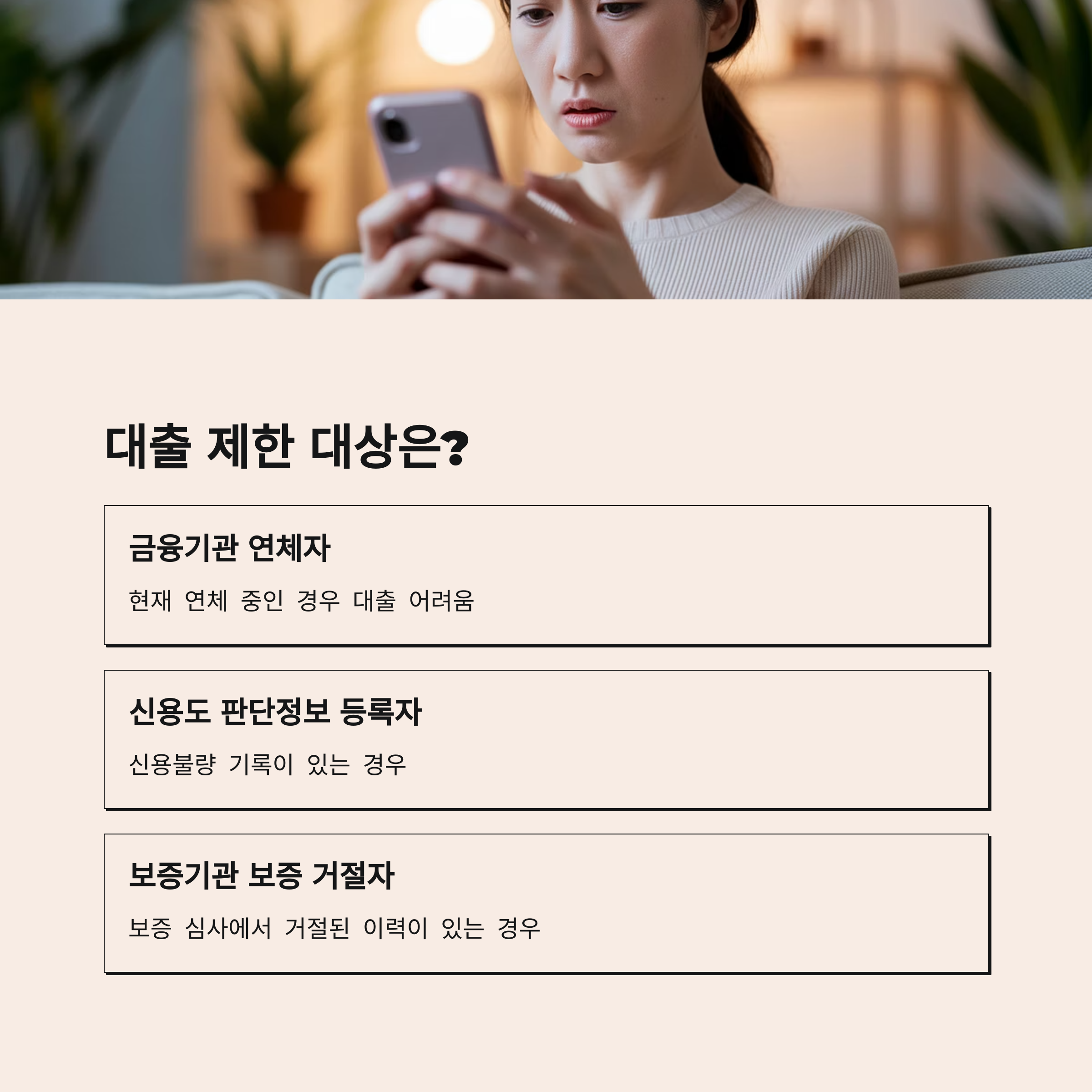 이 조건에 해당될 경우, 카카오뱅크를 포함한 대부분의 금융기관에서 대출이 어려울 수 있습니다. 대출 전 본인의 신용 상태를 확인하는 것이 우선입니다.
