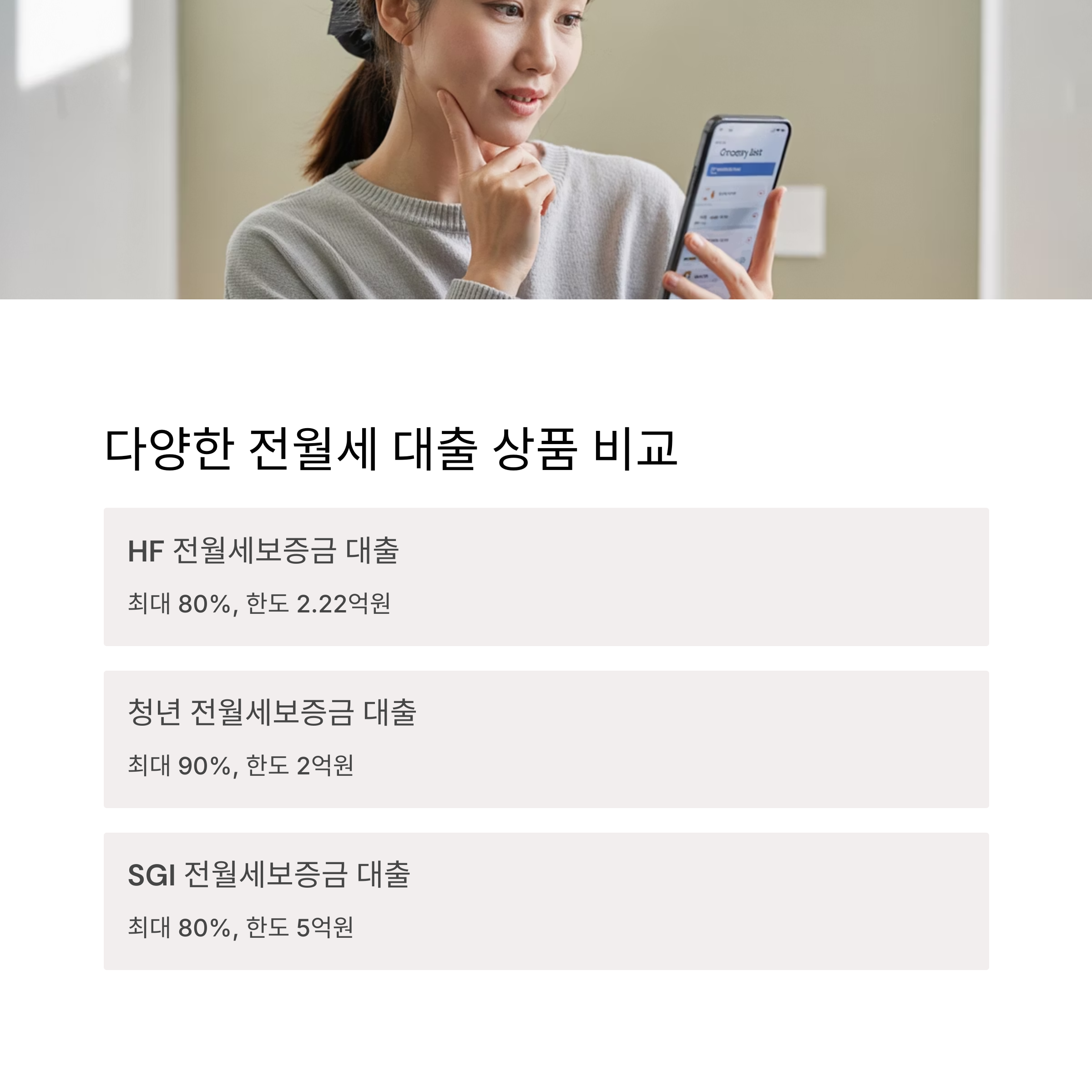✔ HF 전월세보증금 대출: 최대 80%, 한도 2.22억원
