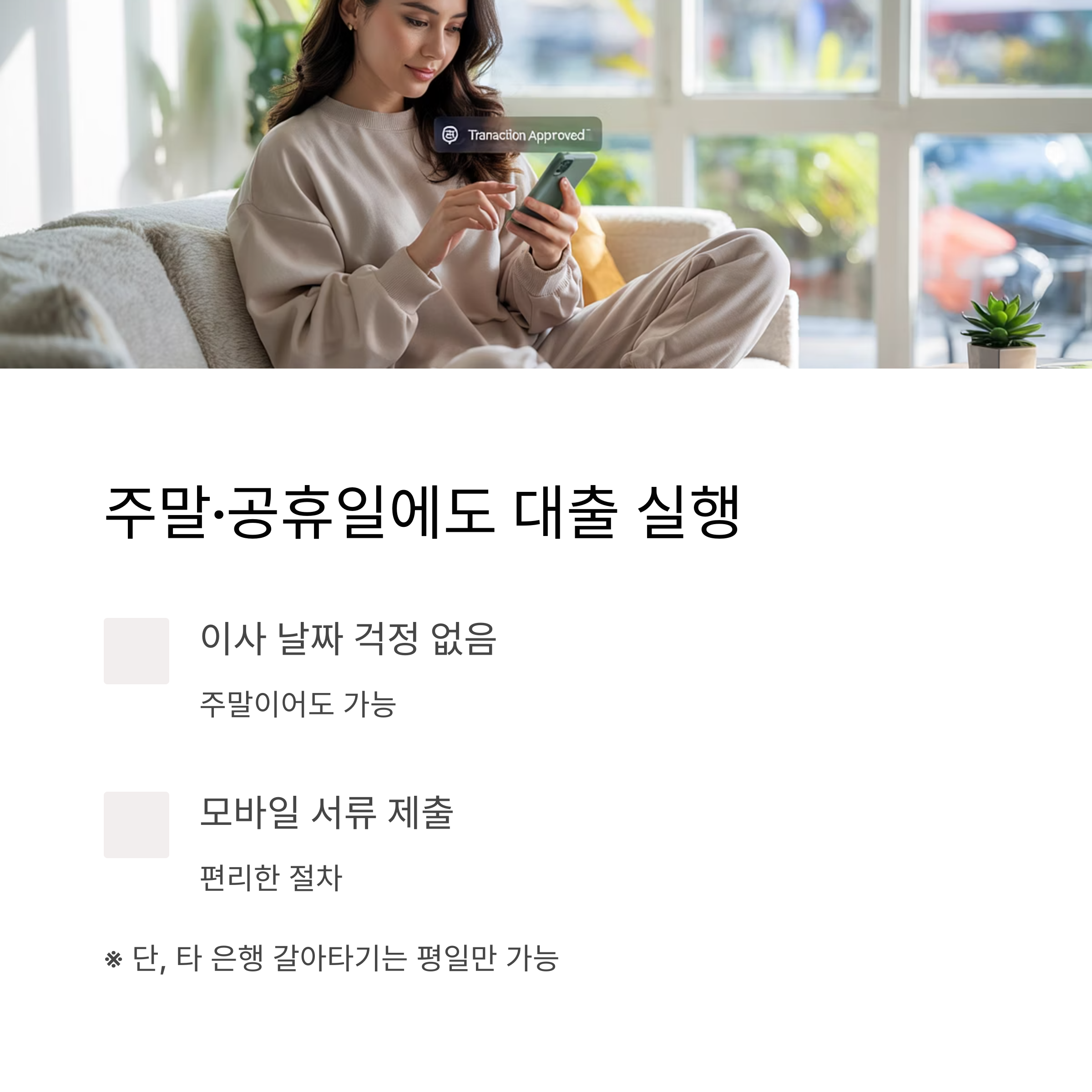 ▶ 대출 실행 가능 (단, 타 은행 갈아타기는 평일만 가능)