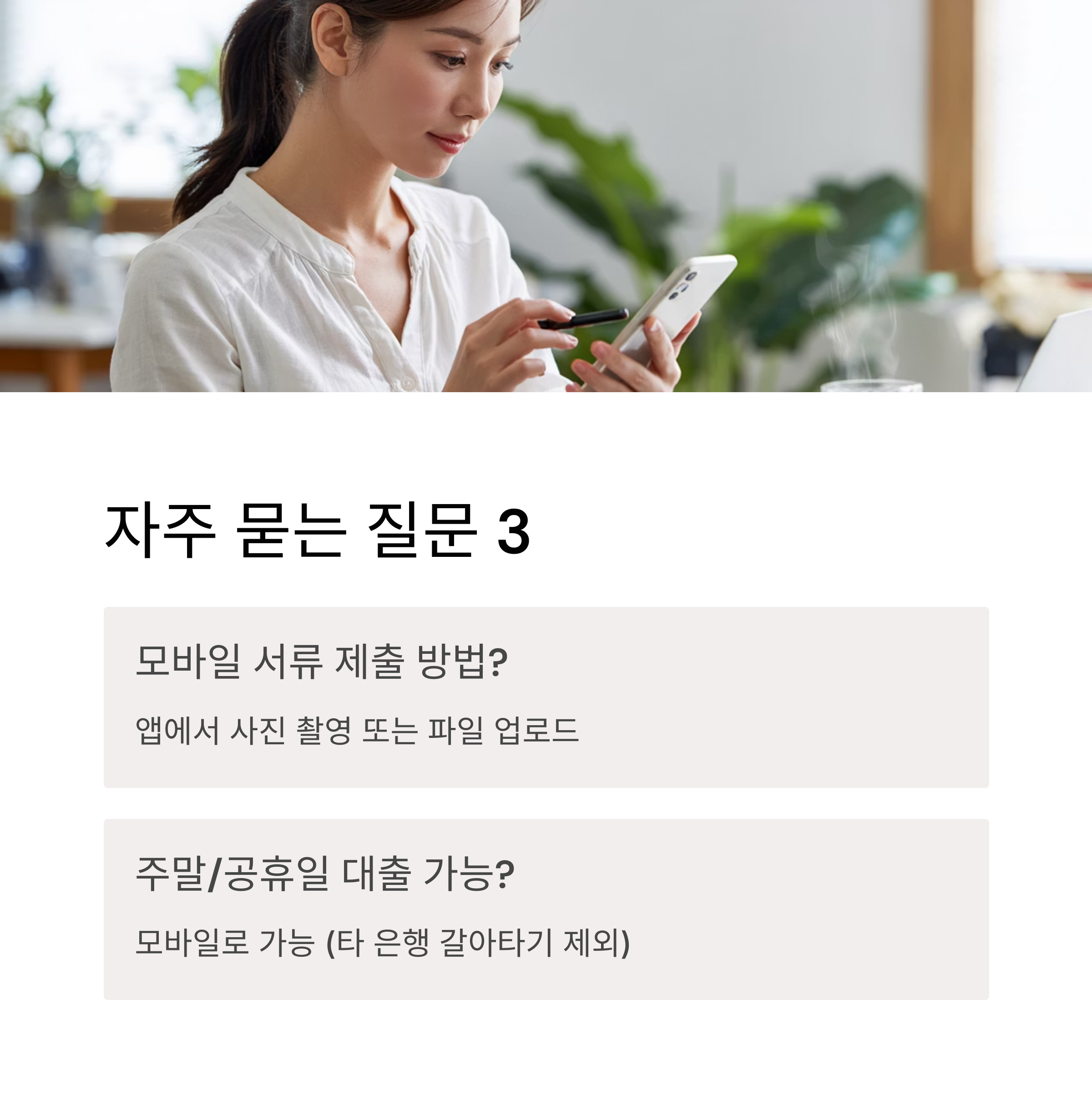 빠른 대출 조회, 다양한 상품, 모바일 서류 제출까지!