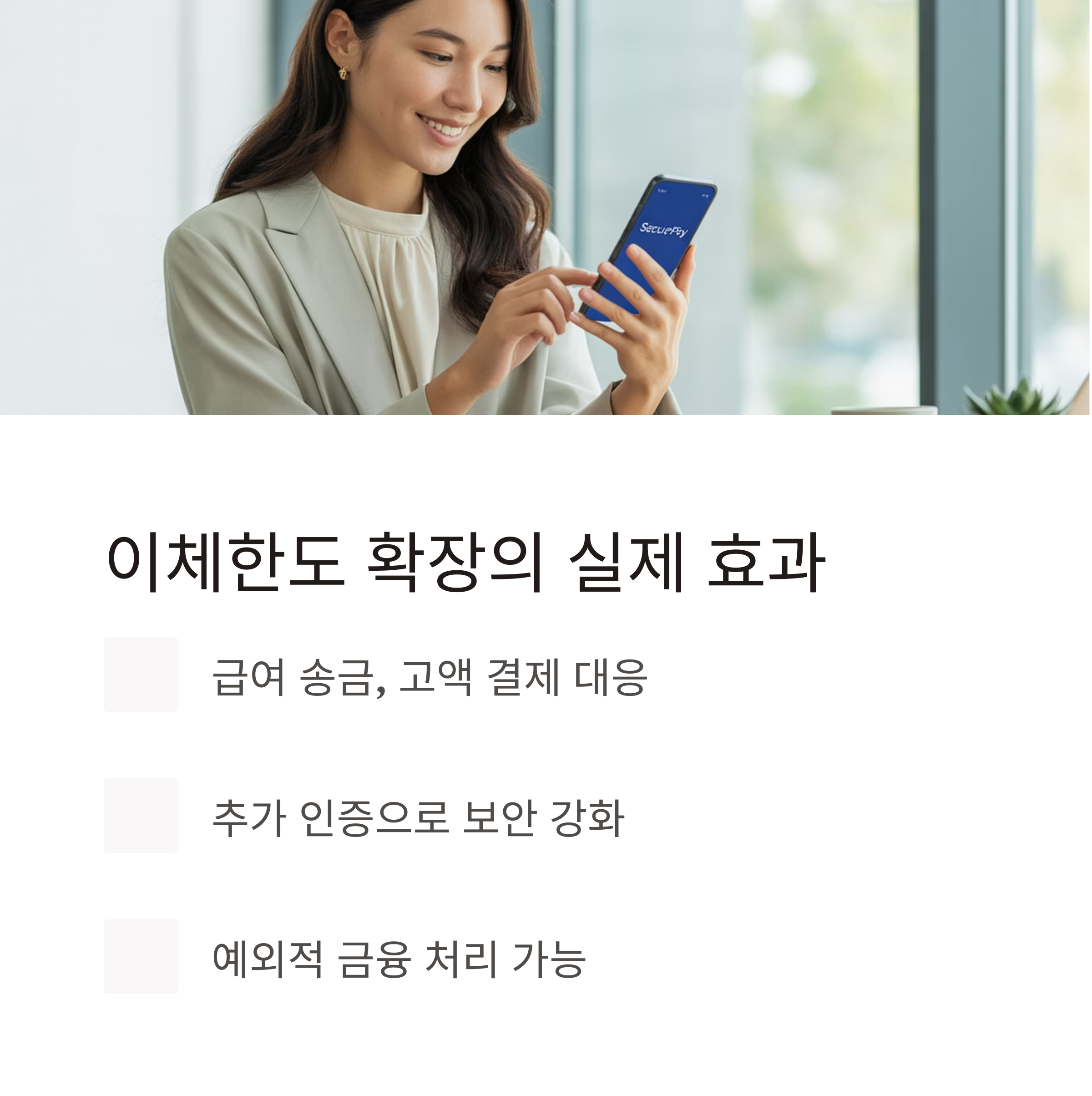 ✔ 급여 송금, 고액 결제 등 다양한 금융 상황 대응